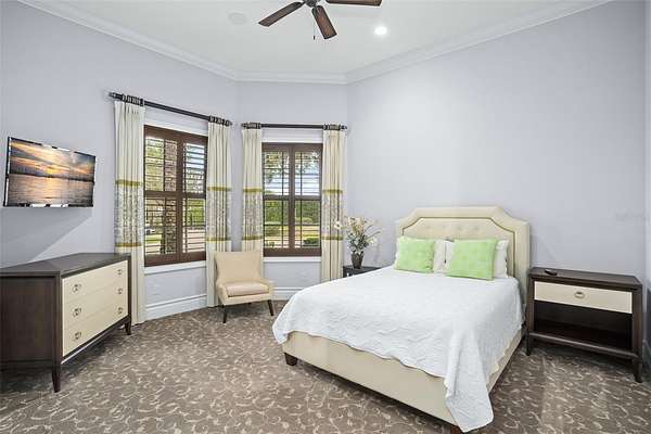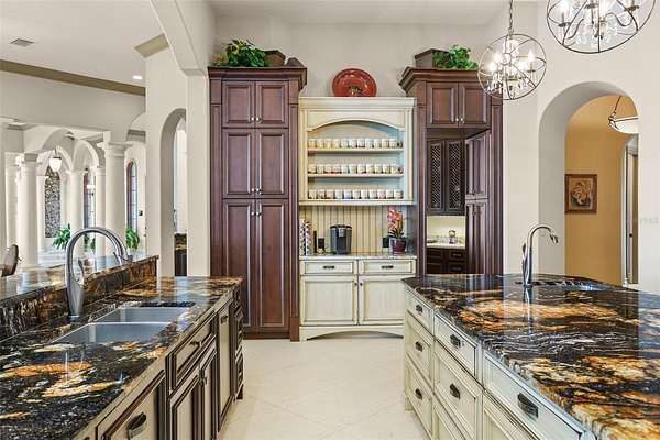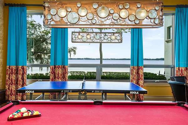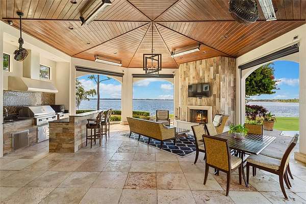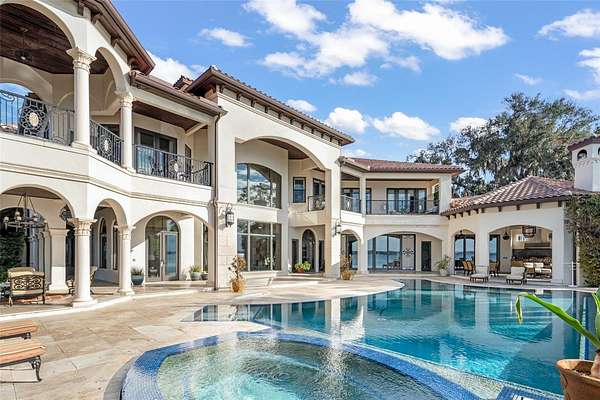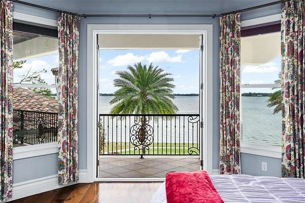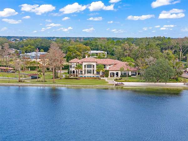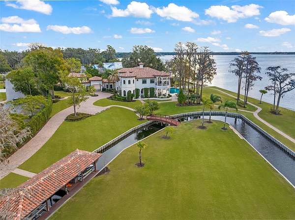 Presenting Sunset Isle: an iconic waterfront estate compound capturing timeless elegance on Windermere's largest and most prestigious Lake Butler, offering captivating unobstructed views from its 700 feet of lake frontage, a private island with moat and drawbridge, sandy beaches, two story double residence guest house, and a majestic and stunning grand mansion with additional guest retreat, all spanning more than 14,444 square feet of living space and 11 bedrooms across both residences. Welcome to this one-of-a-kind haven of privacy and prominence showcasing the best of Central Florida living. Set on a rare 3.75 acres commanding enviable views on the northern shore of Lake Butler, every detail has been thoughtfully designed to celebrate both refinement and tranquility. The impressive palatial main residence boasts 10,649 square feet of living space with 6 bedrooms plus a one-bedroom guest retreat and an array of curated spaces. The Spanish Eclectic interior fuses classic craftsmanship with modern sophistication, creating an inviting and awe-inspiring escape from the ordinary. On entrance be greeted by sweeping floor to ceiling windows to allow breathtaking water vistas, double-sided gas fireplace, a grand colonnade hallway, and architectural details throughout. The gourmet chef's kitchen features top of the line appliances, gas range with multiple burners, ovens, island with second sink, and walk-in pantry. A sports bar games room and showstopping home theater provide an abundance of entertaining options. Other notable amenities include a Castilian wine cellar, bay windows, two wet bars, private salon, elevator, gym, steam room and sauna. Outdoors, a generous summer kitchen with automatic roller screens provide an outdoor oasis for al fresco dining, cooking, or relaxing. The zero-entry infinity pool and vast resort decking provide a breathtaking vantage point for panoramic views of Lake Butler's radiant sunsets, while the shaded Zen garden and white sandy beach offer a tranquil retreat for quiet reflection. With many distinct outdoor venues, serenity is never far away. The estate's private island, accessed by an electric drawbridge, and a boat ramp provide unmatched exclusivity to Lake Butler and the world-famous Butler Chain of Lakes. The two-story detached guest house offers 3,795 sq feet of living space across two, 2-bedroom apartment homes, each with kitchens, laundry rooms, an elevator, and attached two-car garage. Built for a large multi-generational family, guest quarters, or on-site caretakers, the possibilities are endless. Truly a picture-perfect unmistakable showplace offering the very best for the most discriminating buyer. HOME SALE COMES WITH A 2-YEAR LEASE ON A 2025 ROLLS-ROYCE DAWN, WITH ACCEPTABLE OFFER. ASK FOR DETAILS.