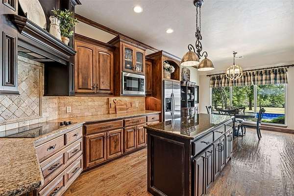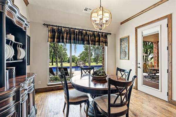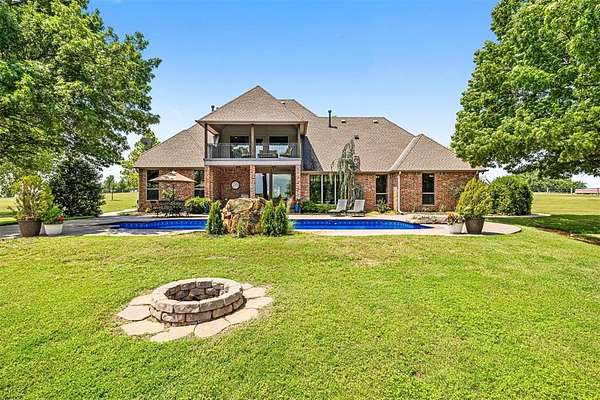 This exceptionally rare OKC property sits on 11+ USABLE acres overlooking the downtown skyline. Insulated from the city noise & crowd, this property offers you an oasis-type escape, while remaining minutes away from all major amenities. Upon entry you'll follow a long concrete drive through a private gated entry down to a large landing area near the oversized 3-car garage. After passing the landscaping and entering the home you'll find a large formal dining, a warm and inviting open-concept living and kitchen space overlooking the backyard acreage & pool. The kitchen comes fully equipped with overwhelming amounts of storage, pull-out drawers in the lowers, 3cm granite counters and a custom solid stone farmhouse sink. All cabinetry is solid wood knotty alder. The primary is generously-sized with clear views of the backyard acreage with an en suite that should be included in a magazine. With a soaker tub, walk-in shower, and massive closet, you will lack nothing in this space. The laundry comes furnished with cabinetry for storage and a sink. The remaining bedrooms are spacious and offer good closet space. Exiting the kitchen onto the covered back patio you'll enjoy stretches in all directions of beautiful landscaping. The large pool is ready to jump in and just received a new liner installation this year. Additionally, the property offers a 2,000 sq ft metal building with concrete floors and industrial shelving units. The property also has a backup generator to power the house in case of emergency outages. Enjoy the lush green fields, mature trees, large pond and exciting wildlife from your back patio, balcony or pool area. This is a one-of-a-kind property..don't let it get away. Call to schedule your private showing today.
