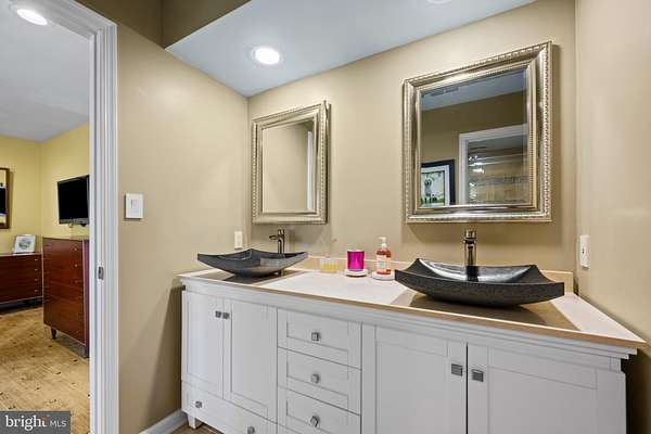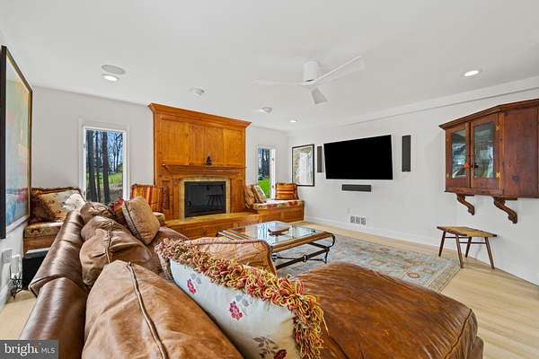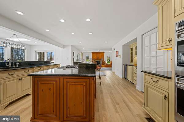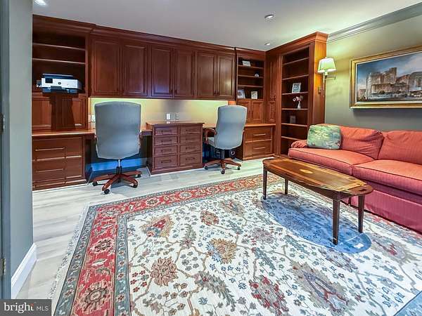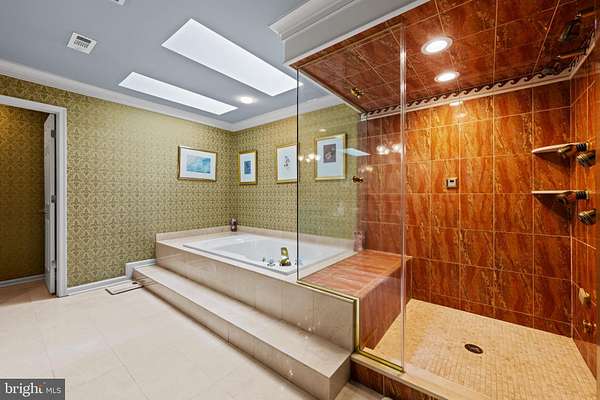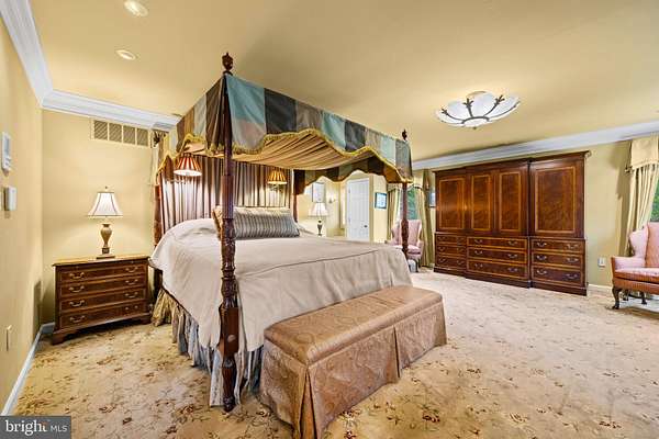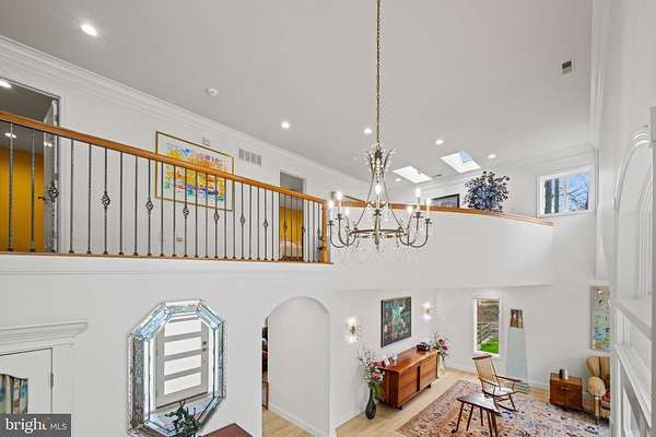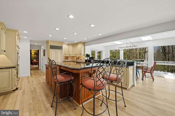 PROFESSIONAL NEW PHOTOS UPDATED IN MLS. Stunning estate home set on a park-like 2.57-acre lot in the exclusive Valley's Crest neighborhood, directly across from Caves Valley Golf Course. From the moment you arrive, the home makes a lasting impression with its elegant brick exterior, circular drive with ample additional parking, expansive three-car garage, and exceptional curb appeal. Designed for privacy and a true resort-style living experience, this property offers a rare combination of luxury, space, and thoughtful upgrades throughout. The bright, skylight-filled interior offers 5,680 finished square feet of beautifully designed living space with an open, airy floor plan. Large windows throughout and multiple skylights flood the home with natural light, while new flooring on the main level, fresh paint throughout, and beautiful crown molding enhance the home's timeless quality and craftsmanship. The garage features newly completed epoxy flooring, and both the ceiling and walls have just been fully refurbished with fresh paint. The chef's kitchen is a true showpiece, featuring custom solid-wood cabinetry, Wolf double oven and natural gas cooktop, Sub-Zero built-in refrigerator, under-counter Sub-Zero beverage refrigerator, warming drawer, under-counter ice maker, new Bosch dishwasher, and new downdraft vent-ideal for both everyday living and entertaining. Floor-to-ceiling windows and French doors in the breakfast area overlook the wooded backyard, creating a seamless indoor-outdoor connection. The home offers exceptional flexibility with multiple suite-style living options, including a main-level suite currently used as an office with custom solid cherry cabinetry and a full en-suite bath, as well as a lower-level suite-perfect for an in-law suite, guest quarters, or multigenerational living. The lower level also features a spacious family room, den, full bath, and ample storage. The luxurious primary suite boasts a spa-like bath with solid cherry cabinetry and a steam shower, reflecting the same level of quality found throughout the home. Three additional bathrooms have been tastefully updated. Upgraded lighting fixtures, LED recessed lights, and new paddle switches and receptacles with screwless plates further elevate the interior. Outdoor living is truly exceptional. A wrap-around deck spanning the entire rear of the home, supported by stone columns, is ideal for family gatherings and entertaining, while overlooking a large bluestone patio, fire pit, natural stone steps, stone retaining walls, fountain, and tranquil park-like setting. The fenced yard is well-suited for pets, and a comprehensive drainage system surrounds the property, ensuring both beauty and functionality. Additional highlights include: an expansive three-car garage plus generous additional parking, Generac generator (provides partial power to the home), central vacuum system, new washer and dryer, attic insulation, replaced gutters with gutter covers, stone mailbox, and beautifully landscaped grounds. The home features two HVAC systems, replaced in 2013, for efficient climate control. The main system includes a high-efficiency furnace located in the lower level storage room, serving both the first floor and lower level. A second system is located in the attic and is accessible via a pull-down stairs from the primary bedroom closet. The system was thoughtfully designed as a non-condensing unit to prevent potential freezing issues during winter months. The home has been owned and lovingly maintained by long-term owners since 1999, following the original owner's relocation after a short ownership period. Over the years, the property has been continuously updated and meticulously cared for, reflecting pride of ownership throughout. Homes offering this level of quality, privacy, land, and luxury rarely become available in this location. This is a truly rare opportunity. All showings are by private appointment only with the listing agent, Sunok.