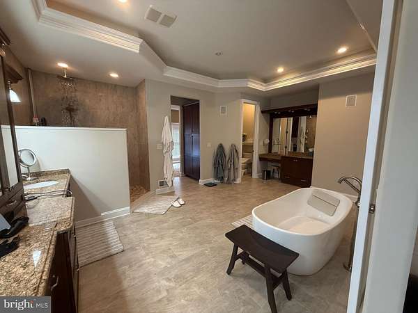 - 2 nd Kitchen, Bar, Breakfast Area, Built-Ins, Carpet, Ceiling Fan(s), Chair Railings, Crown Moldings, Entry Level Bedroom, Family Room Off Kitchen, Formal/Separate Dining Room, Gourmet Kitchen, Island Kitchen, Kitchenette, Primary Bath(s), Recessed Lighting, Sauna, Soaking Tub Bathroom, Sprinkler System, Stall Shower Bathroom, Traditional Floor Plan, Tub Shower Bathroom, Upgraded Countertops, Wainscotting, Walk-In Closet(s), Wet/Dry Bar, Window Treatments, Wine Storage, Wood Floors
