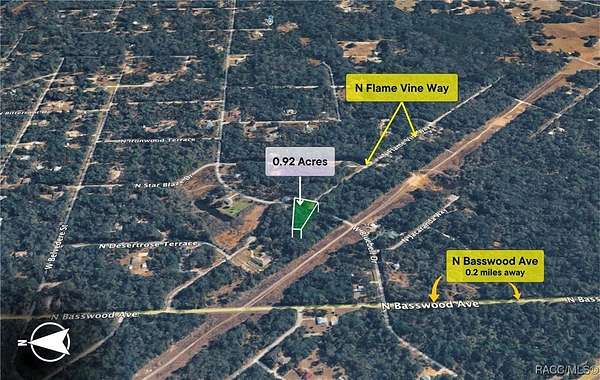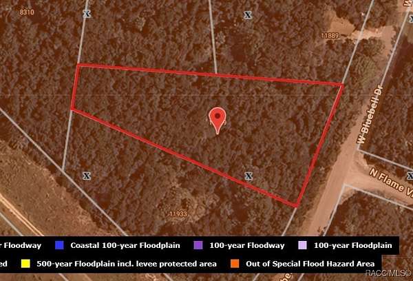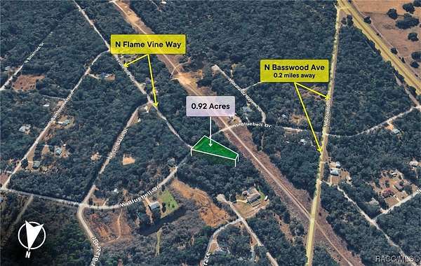 From where the new Suncoast Expwy will end on Hwy 19, go south and make the first left on Dunnellon Rd. Make your fist left on Bitterroot. Make the second left Flame Vine Way. Flame Vine ends in front of the lot. Hurry, call your agent NOW!