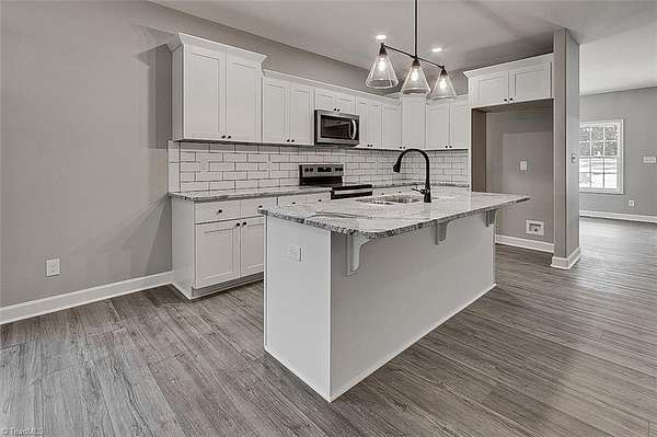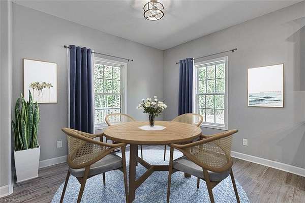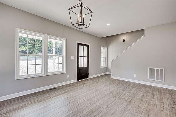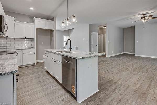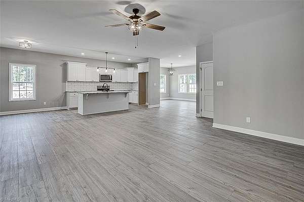 Beautiful new construction home situated on 1.53 +/- acres in Southwest Randolph County! This gem boasts an open floor plan with 9' ceilings, modern lighting, LVP & ceramic tile floors. Nice living room as well as a den give ample room for entertaining. Beautiful kitchen features granite counters, an eat-at island, stainless appliances & plenty of storage space! Guest bath & laundry on main level. Primary suite on main has walk-in closet & full bath boasting double vanity w/granite, tub & separate shower! Spacious upstairs has two additional bedrooms, full bath & recreation room offering many possibilities! Spend the upcoming fall evenings on the front porch or out back on the covered back porch overlooking the nice back yard! Double attached garage. Beautiful lot in a superb location!