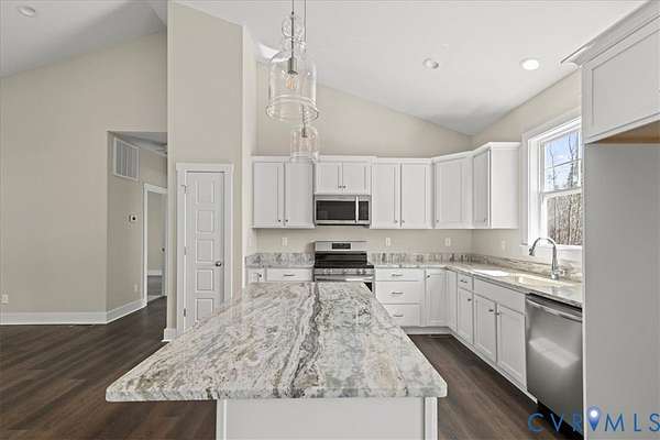Set on a sprawling nearly 2.4 -ACRE LOT, this beautifully designed Nottoway Plan offers the perfect blend of comfort, space, and peaceful country living. This 3-BEDROOM, 2-BATH home features an OPEN FLOOR PLAN with soaring CATHEDRAL CEILINGS, creating a bright and inviting living space ideal for everyday living and entertaining. LUXURY VINYL PLANK (LVP) FLOORING flows throughout the main living areas, complemented by PLUSH CARPETING IN THE BEDROOMS for added comfort. The kitchen is thoughtfully appointed with GRANITE COUNTERTOPS, STAINLESS STEEL APPLIANCES, and modern finishes that add both style and functionality. Tasteful details throughout the home enhance its warm, elegant atmosphere. Enjoy the tranquility of Burkeville and the surrounding natural beauty, with plenty of room to relax, explore, or entertain outdoors. Whether you're sipping coffee on the expansive front porch, hosting gatherings in the spacious backyard, or simply enjoying scenic views from every window, this property offers a true retreat from the everyday hustle. Schedule your private showing today and experience peaceful living with space to breathe-this Burkeville gem is ready to welcome you home.