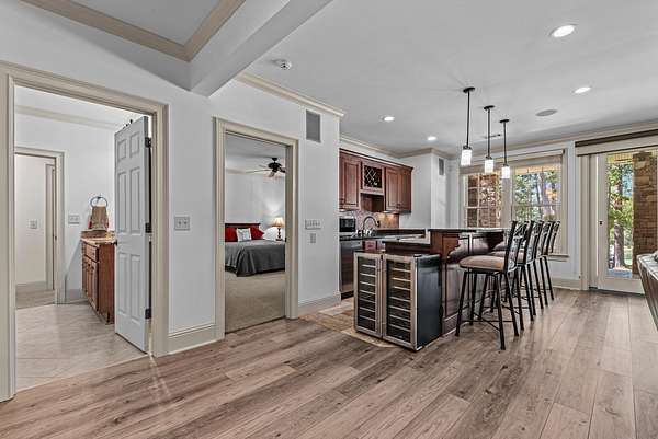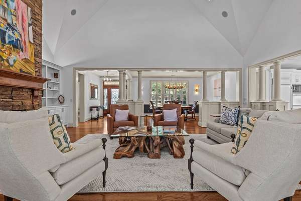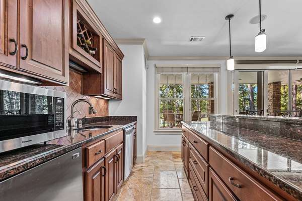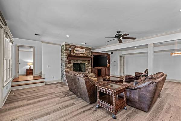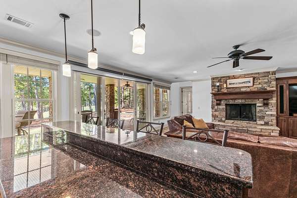 LIVE THE REYNOLDS LAKE OCONEE LIFESTYLE -- ELEGANTLY UPDATED HOME ON THE 15TH HOLE OF THE RICHLAND COURSE ON ALMOST 2 ACRES! Perfectly situated on the 15th hole of the Richland Course and just moments from the coveted Richland Point amenities, this extraordinary 4-bedroom, 4.5-bath home embodies effortless lake and golf living. Every detail has been thoughtfully updated to blend timeless craftsmanship with modern luxury. As you step inside, you'll be greeted by soaring ceilings, abundant natural light, and an open-concept design that feels both grand and inviting. The great room draws you in with its striking stone fireplace, custom built-ins, and warm sense of gathering, the perfect place to unwind after a day on the lake or golf course. The formal dining room sets the tone for memorable dinners with friends and family. The newly refreshed gourmet kitchen is as functional as it is beautiful, featuring Wolf and Sub-Zero appliances, designer lighting, and an elegant butler's pantry with a copper sink and ice maker. A generous walk-in pantry with custom cabinetry ensures there's room for every culinary essential. The main-level primary suite offers a peaceful retreat with vaulted ceilings and a spa-inspired bath complete with granite countertops, dual vanities, premium fixtures, and a luxurious steam shower. The custom closet with built-ins and new, plush carpeting completes this serene space. Step out to the screened porch, designed for four-season enjoyment with vinyl windows for cooler days, and panoramic views of the golf course and tranquil pond. Upstairs, a private guest suite or home office offers flexibility and quiet comfort. The terrace level was made for entertaining, featuring a spacious recreation room with a stacked-stone fireplace and a sophisticated wet bar equipped with sink, dishwasher, and dual beverage refrigerators. Two additional guest suites, each with a full bath, provide space for everyone to feel at home. Outdoors, enjoy peaceful mornings or sunset evenings on the covered travertine patio, complete with a soothing spa and the serene sounds of nature. With a SONOS whole-home sound system and freshly painted interiors and exteriors, this home is truly move-in ready. Here, every day feels like a getaway, where morning walks lead to the water's edge, afternoons are spent golfing or boating, and evenings are shared with friends under the stars. Experience the very best of Reynolds living in this extraordinary home. Membership available.