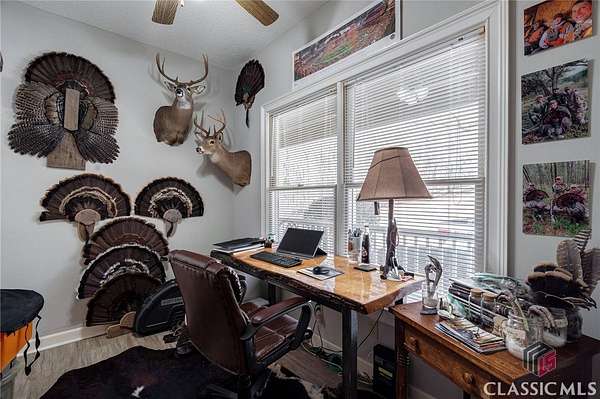 Shoal Creek Hideaway is a +/- 38acre property located in Oconee County, GA (MP# D02 -040P). This property offers privacy and convenience, situated just off Old Barnett Shoals Road, and accessed via a gated private drive. The property features a home and large shop that are nestled in a mature hardwood forest overlooking Shoal Creek. The property has 2,400 feet of frontage along Shoal Creek. This custom-built home, completed in 1989, spans 3,024 sq ft and features an unfinished daylight basement, offering great potential for future expansion. The home's unique 2-bedroom plus home office design includes a spacious primary suite with a luxurious his-and-her bathroom layout and ample closet space. The expansive basement provides the perfect opportunity to add extra bedrooms, a recreational room, or customize the space to fit your needs. Property is currently enrolled in CUVA, buyer will be required to continue the current CUVA which ends 12/31/2031. The entrance is secured by an electronic gate. All showings must be scheduled through the listing agent. Home is being sold "as is", minimum 24 hours' notice required to view property.
