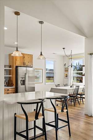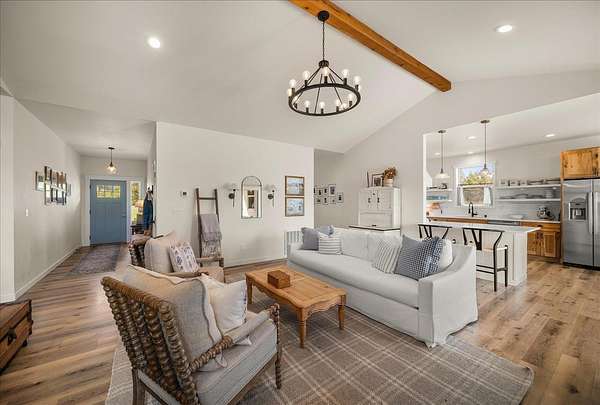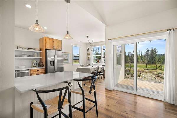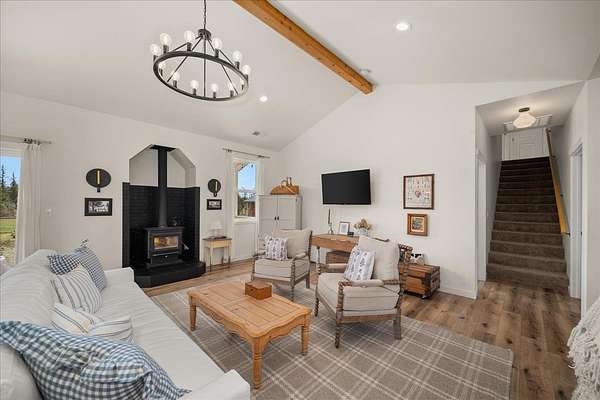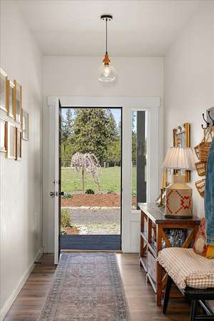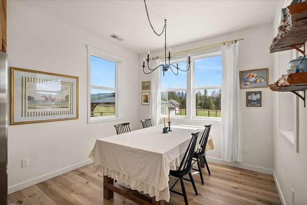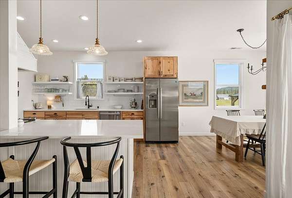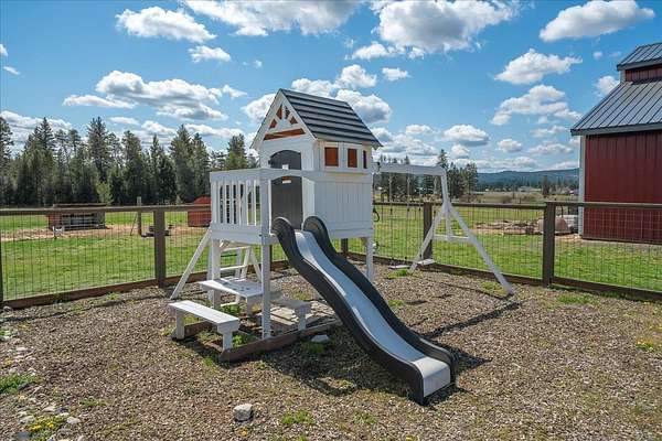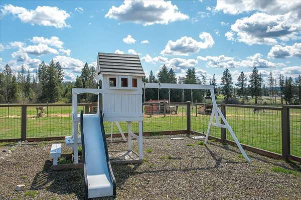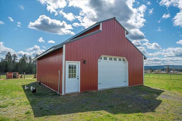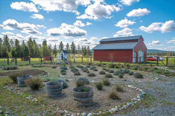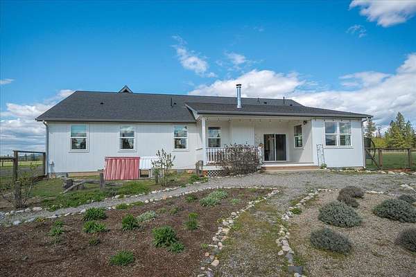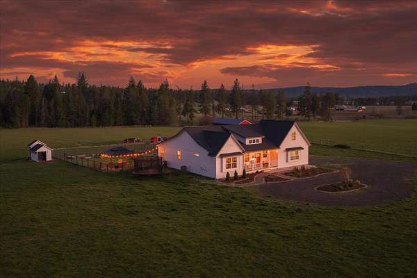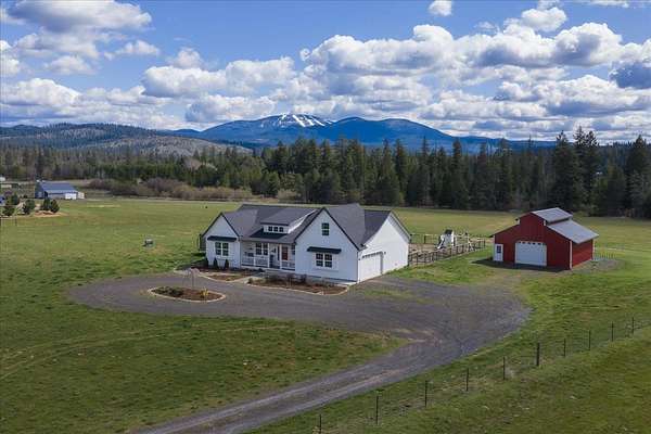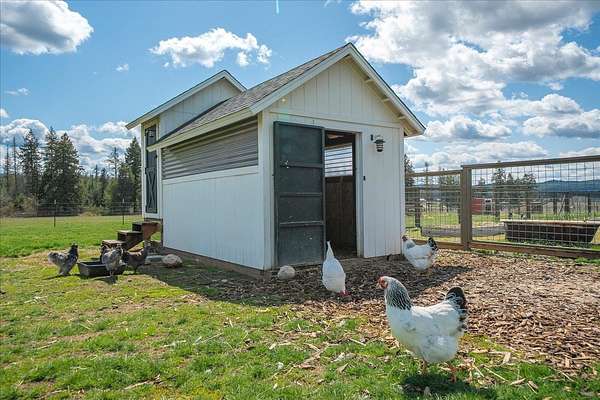 This homestead property in Elk is a dream. With 10 acres, a beautiful remodeled rancher home, a 30x36 shop, chicken coop, fenced pastures, back yard flower garden, and creek that runs through the back section of the property, this is your dream! The home has been completely renovated with beautiful finishes. It has vaulted ceilings in the living room, large kitchen with beautiful wood cabinets and quartz countertops. Plenty of space in the walk in pantry. the dining nook has windows surrounding with views of Mt. Spokane. The primary also has great natural light, walk in closet and bathroom with clean large shower. The main floor has 2 more bedrooms and 1 full bathroom. There is also the mvinfloor laundry off of the garage. Upstairs loft space is being used as a bedroom but could be an office, living room or flex space. Step outside into the farm with fenced in backyard with fresh flower beds. Enjoy Mt. Spokane Views as you work the land and build out your farmstead dreams!