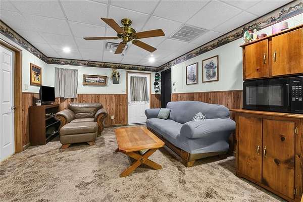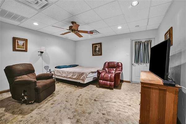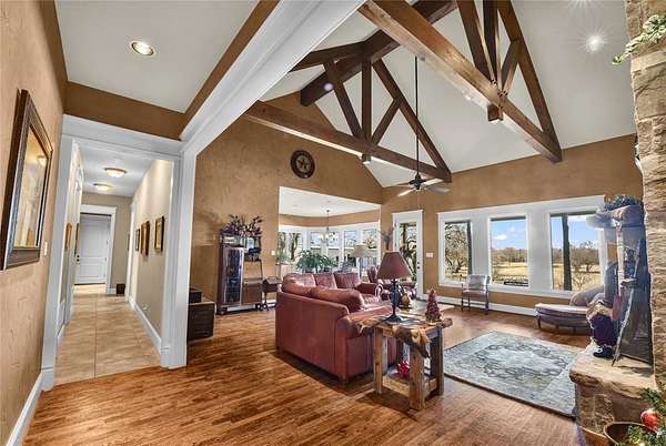 Beautiful 19+ acre AG-exempt estate with a custom built rock home, massive workshop with furnished apartment, and turnkey setup for cattle or livestock. This property offers the perfect blend of luxury living and functional ranch life. The 3 bed, 2 bath home features vaulted ceilings with exposed wooden beams, hand-scraped hardwood floors, a stone fireplace, bay windows, and an open kitchen with granite counters, propane range, custom cabinetry, and a huge walk-in pantry. The primary suite is a true retreat with a large soaker tub, dual vanities, walk-in shower, and an incredible boutique-style closet with extensive built-ins. Two guest rooms share a Jack-and-Jill bath and offer beautiful windows with shutters and large closets.