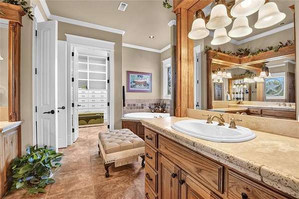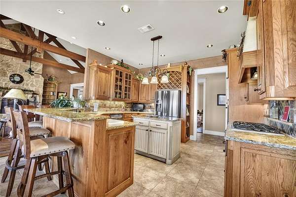 - Decorative Lighting, Granite Counters, Kitchen Island, Natural Woodwork, Open Floorplan, Pantry, Vaulted Ceiling(s), Walk-In Closet(s)