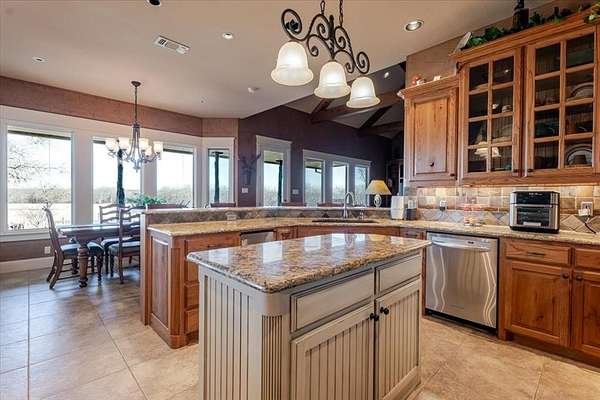- Decorative Lighting, Granite Counters, Kitchen Island, Natural Woodwork, Open Floorplan, Pantry, Vaulted Ceiling(s), Walk-In Closet(s)