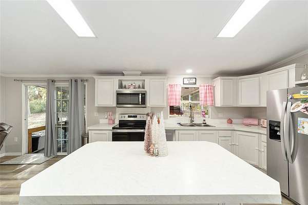 Welcome to this gem of a home located on nearly 2.5 acres. This home is located in Alachua, Florida- just a quick drive to Gainesville and High Springs, and just a skip away to Downtown Alachua. With 4 spacious bedrooms and 3 full baths on a layout on over 2200 sq feet, you won't want to overlook this! Walk inside and discover a beautiful modernized interior with incredible yet practical features such as a cozy wood-burning fireplace, double paned windows, walk in closets, an eat-in dining and kitchen space, and a wonderful screened in patio. Head out to see a 50 x 50 fence installed on the property made perfect to hang out and host in your own backyard. This home has a newer roof, a new water heater, brand new dishwasher, and key pad locks on the door. The master bathroom features a dual sink, a large tub, and a shower. Don't miss the opportunity to raise your family, your animals, or your garden here.