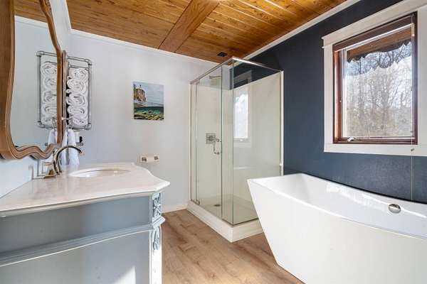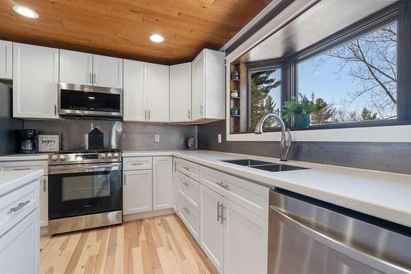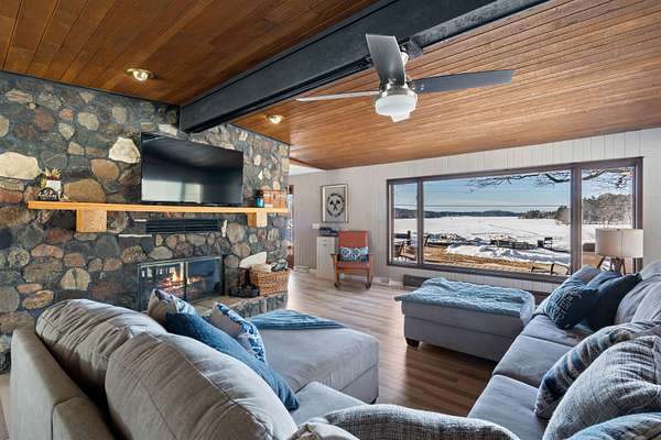 An extraordinary opportunity on Lake Nebagamon -- 24.9 private acres with an incredible 819 feet of shoreline. The sunsets are amazing!! This completely and meticulously renovated home offers luxury, privacy, and year-round recreation in one unforgettable package. Inside, the stunning kitchen shines with brand-new quartz countertops, updated cabinetry, and modern appliances -- thoughtfully designed for both everyday living and entertaining. The primary suite is a true retreat, featuring dual(His & Hers) walk-in closets and a spa-inspired ensuite bath reminiscent of a five-star resort. Step outside and experience nearly two miles of private trails winding through your own park-like setting. The groomed, level yard provides expansive space for gatherings, recreation, or simply soaking in the peaceful surroundings. Enjoy evenings on the decks or relax on the new paver patio complete with an in-ground firepit and custom fire ring overlooking the water. While a lightly traveled road sits between the home and the lake, access is seamless from the end of the driveway, leading to your sandy-bottom beachfront and private dock -- ideal for swimming, boating, and lakeside lounging. Lake Nebagamon is renowned for exceptional year-round fishing and recreation, making this property perfect for all seasons. A newly installed circular blacktop driveway provides convenient access to the impressive 60x30 outbuilding, which includes a 30x20 shop and a detached two-car garage. Brand new main floor bathroom. Brand-new boiler/Water heater combo. Brand-new, high-efficiency forced-air furnace. Luxury. Acreage. Shoreline. Privacy. This is lake living at its finest.