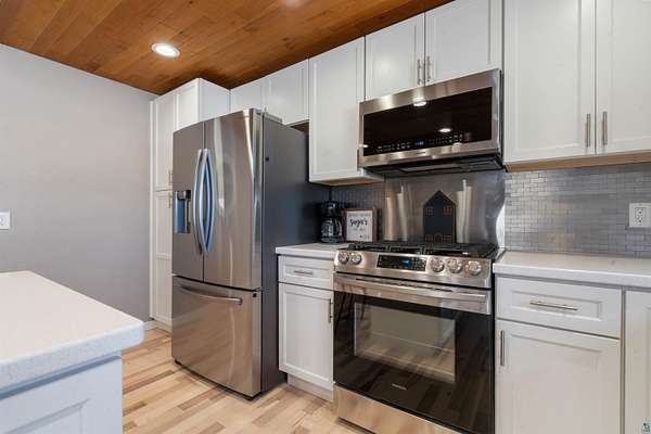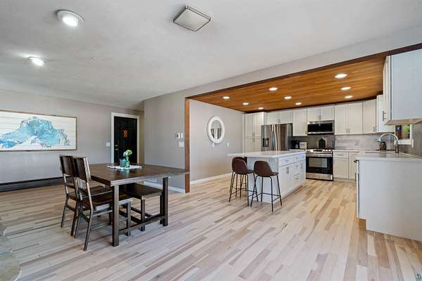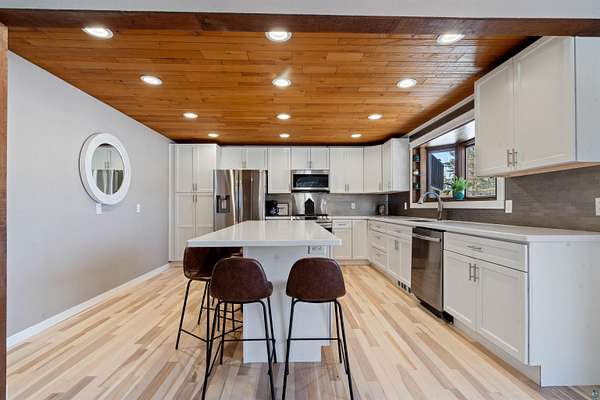- Beamed Ceilings, Ceiling Fans, Dryer Hook-Ups, Drywalls, Eat-In Kitchen, Foyer Entry, Garage Door Opener, Hardwood Floors, Kitchen Center Island, Main Floor Laundry, Natural Woodwork, Patio Door, Vaulted Ceilings, Walk-In Closet, Washer Hook-Ups