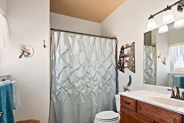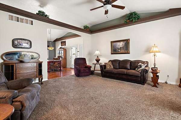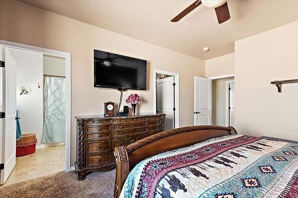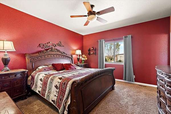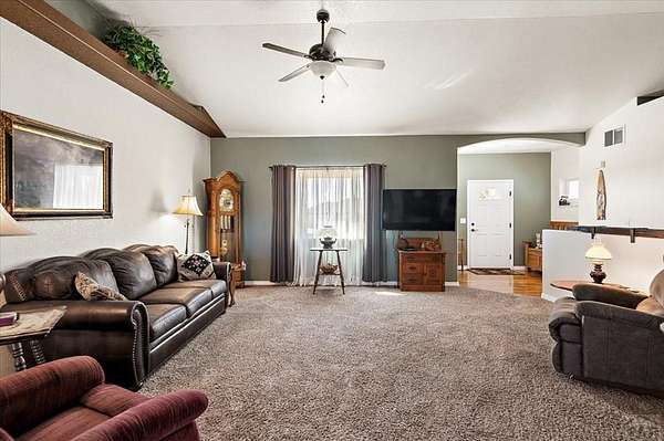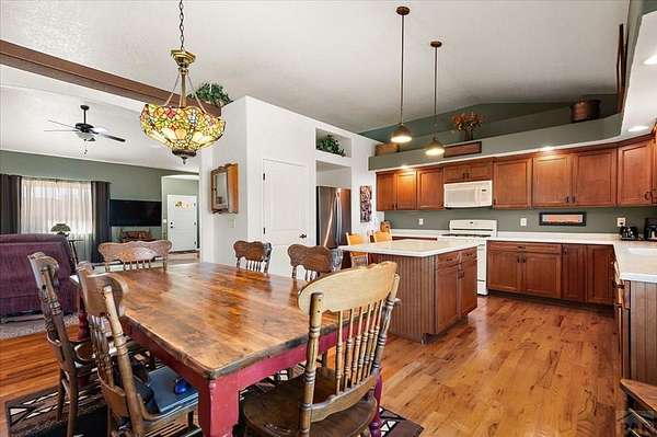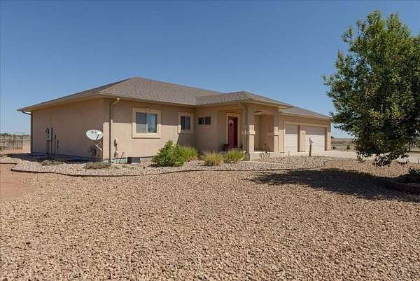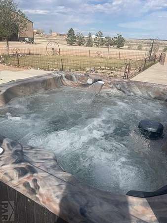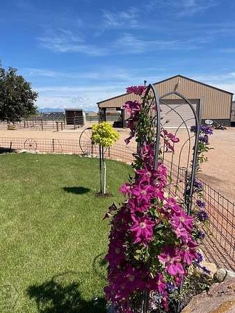 One owner turn key, 2.6 acre Ranch home features large kitchen with Maplewood soft close cabinets, breakfast bar, solid surface Corian counter tops. Hardwood flooring in kitchen, dining area and entry way. Three of 4 bedroom s have direct entry to bathrooms. Great deep soaking tub in primary bedroom. All bedrooms have nice big walk-in closets with plenty of storage. Large Family/gaming room with a dry bar for entertaining. Outdoors you will find a concrete patio with a 4 person hot tub for relaxing after a long day. Enjoy the wonderful view of the mountains and pretty clematis and honeysuckle vines. Also a 50x50 building with an old fashion saloon within that features a potbelly wood stove for winter fun. Walk out to large covered open porch to watch horses if desired. Three horse corrals include 2 shelters, automatic waterers an outdoor arena. Save money on your electricity using the Solar system year round. Horse shoe pit and sandbox. Home Inspection with Home warranty included. New Owens Corning shingles in October of 2024 with transferable warranty. Only one mile from shopping and hospital. Load up the horses!