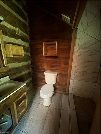 Excellent Investment Potential in high growth area. Current offering includes: rustic log cabin (needs some rehab but value in logs), detached garage/workshop, underground power, existing septic system/well and situated on 3.83 acres. Access is provided by recorded right of way to Pleasant Ridge Rd (Deed of Dedication recorded in 1967 and states access is 60 ft wide). Previously this property has had 2 residential units (cabin and singlewide). Singlewide has been removed but power is on site. The 3.83 acres consists of open, level land when entering. Then transitions to gently sloping natural forest. City of Greensboro is located just 1 parcel away and apartment buildings are located just across the street