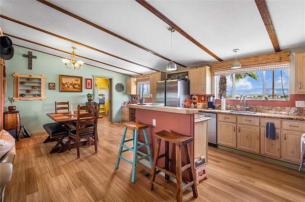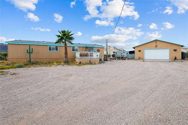 Stunning Mountain-View Retreat on 2.35 Acres in the Southwest area of Golden Valley! Nestled in the scenic foothills on the west side of Golden Valley, this beautifully maintained 3-bedroom, 2-bath, 1,768 sq. ft. manufactured home offers panoramic views of the Black Mountains, Cerbat Mountains, and the valley floor. Situated on a spacious 2.35-acre partially fenced and gated lot, this property combines peaceful rural living with impressive amenities. Step inside to an open-concept, split floor plan featuring vaulted ceilings, abundant natural light, and a large country kitchen complete with an island, breakfast bar, granite countertops, and ample cabinet space. Just off the kitchen, you ll find the dining area, a built-in desk area and a convenient utility room. The spacious primary suite includes a walk-in closet and a luxurious en-suite bath with double-sink granite vanity, walk-in shower, and jacuzzi tub with recirculating hot water. Across the home, two generously sized guest bedrooms each with walk-in closets share a full guest bath adorned with a decorative sink and tile countertop. Outdoor living is just as inviting with both a covered front patio offering breathtaking views of the majestic Black Mountains and a back deck perfect for taking in the expansive valley and mountain views. Additional features include a 30x40 detached garage, full RV hookups with a 50-amp plug, garden area, firepit, outside shower, greenhouse and still there's plenty of space for your toys, hobbies, or future additions. Whether you're looking for a peaceful retreat, a full-time residence, or a desert getaway with room to roam this property is a must-see! Come and explore our beautiful Arizona desert, beautiful sunrises, sunsets and starry night skies. Don't wait call a Realtor and schedule your personal showing of this home today.