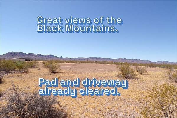 Est $131/moOutstanding views of the black mountains. What a great place to build your home. Bring your horses, goats and chickens. Plenty of space. Build a supersize garage for all your outdoor fun toys. Lots of trails for off roading in most directions. Lake Mohave is not far for boating, fishing and swimming. Laughlin is also close by for gaming, restaurants and entertainment. Kingman is also available for shopping, medical facilities and restaurants. Driveway and pad already cleared. Drive by and view anytime.