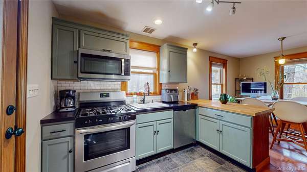 Welcome home to your own private retreat overlooking the stunning Bashakill Nature Preserve. Relax and unwind on the expansive front porch featuring beautiful Brazilian hardwood flooring, the perfect place to take in peaceful water views and surrounding nature. Step inside and you'll immediately notice the exceptional craftsmanship and thoughtful details throughout, including rich Brazilian hardwood floors, Andersen windows, and a charming reading nook highlighted by a unique stained-glass window. The fully renovated kitchen is equipped with stainless steel appliances, ready for everyday living or entertaining. Just off the living room, a versatile additional space serves perfectly as a family room or guest suite. Upstairs, you'll find two generously sized bedrooms and a full bath, all offering serene views of the Bashakill. A full attic provides ample storage or the opportunity to create additional living space. Built with quality in mind, the home features a durable metal roof and Hardie board siding, reflecting the no-expense-spared renovation throughout. Enjoy the lifestyle this location offers-take a stroll to a nearby winery, walk to a local waterfall, or simply enjoy the tranquility of nature. Ideal for remote work with modern conveniences including an electric vehicle charger, and conveniently located for an easy commute to Route 17/86.