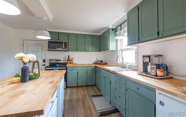 Welcome to this charming and beautifully updated 3 bed, 1 bath home tucked away in a quiet country setting just minutes from Rolla. Sitting on 2.42 acres, this property offers the perfect mix of privacy, space, and modern comfort. A welcoming covered front porch sets the tone as you step inside to an open and inviting floorplan enhanced by luxury vinyl plank flooring that extends throughout the entire home. The spacious living area flows seamlessly into the oversized kitchen, where you'll find a generous center island, butcher block countertops, and charming cabinetry that provide both style and functionality. Whether you're cooking everyday meals or hosting gatherings, this kitchen offers plenty of room to spread out and enjoy. The bathroom has also been tastefully updated, and all three bedrooms are surprisingly roomy, offering flexibility for family, guests, or a home office. Outdoors, the possibilities are endless. With 2.42 acres at your disposal, there's ample room to play, garden, or enjoy your favorite outdoor hobbies. It's an ideal setup for anyone looking to raise chickens or simply enjoy a more self-sufficient lifestyle. A convenient shed offers extra storage for tools, lawn equipment, or recreational gear. If you're dreaming of country living with tasteful updates and easy access to town, this property delivers the best of both worlds--move-in ready and full of potential!