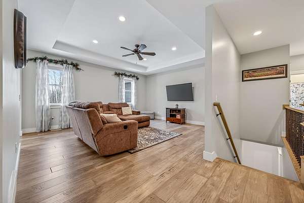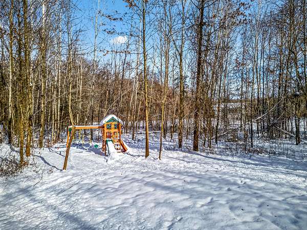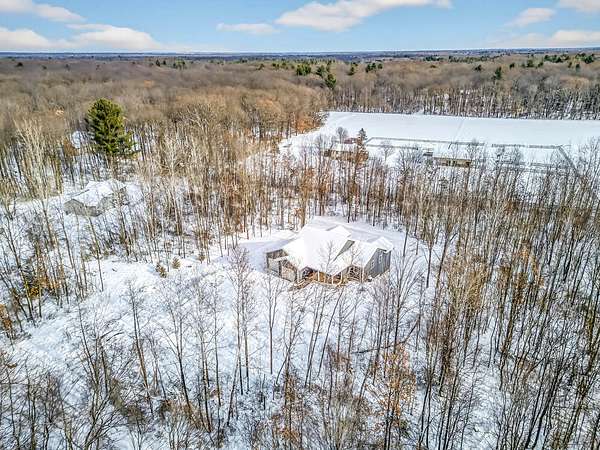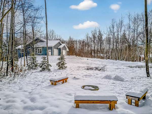 Welcome to this beautiful walk-out ranch offering a very private setting with seclusion and peace on almost 2 acres. Set back on a private road, this 5-bedroom home offers a generous floor plan with very large bedrooms and bathrooms. The gourmet kitchen features quartz countertops, a center island, and a snack bar. Custom cabinetry with plenty of storage and a dining area overlooking the beautifully landscaped backyard. The master suite includes a large soaking tub and a spacious walk-in closet. The backyard has been finished with sod, irrigation, berry bushes and asparagus plus a custom fire pit, and a playground. The walk-out basement is finished with a large family room and storage room. Home has 9ft ceilings on each level, a 19x12 deck, oversized 2 stall garage, and plenty of yard for an outbuilding, a garden, or a pool. Showings to begin December 16, 2025.