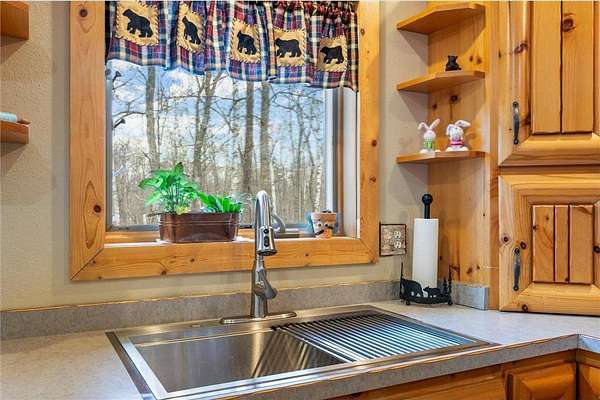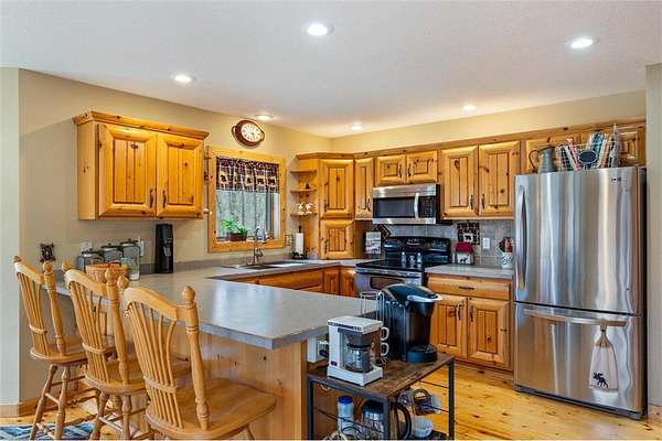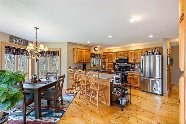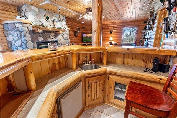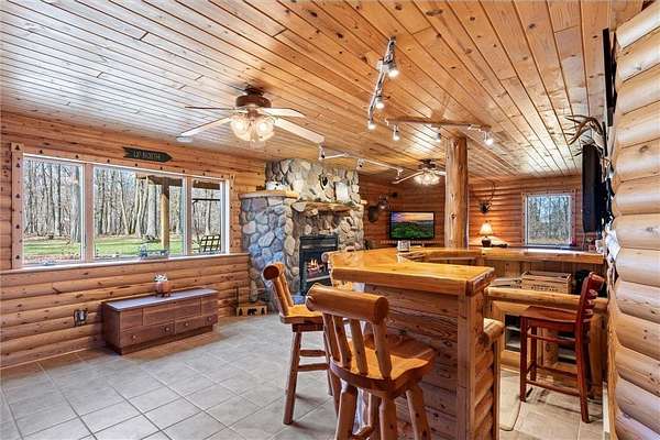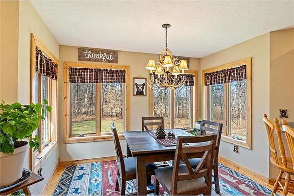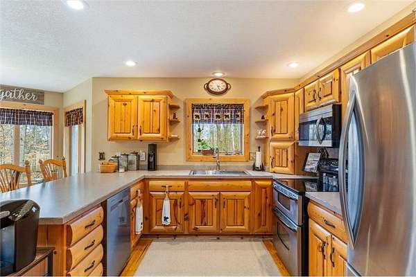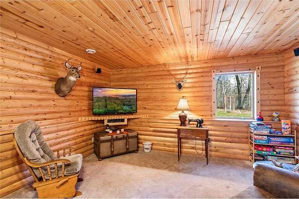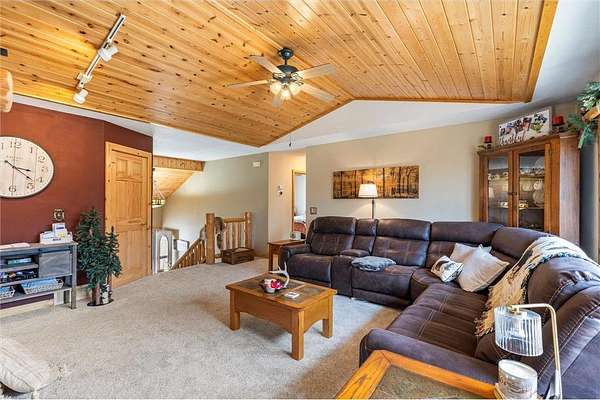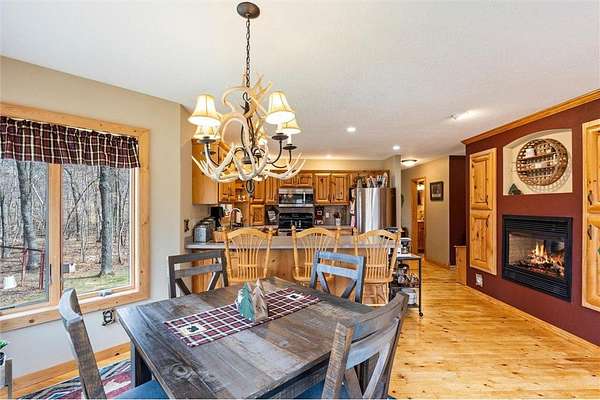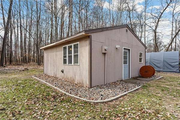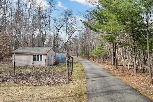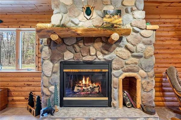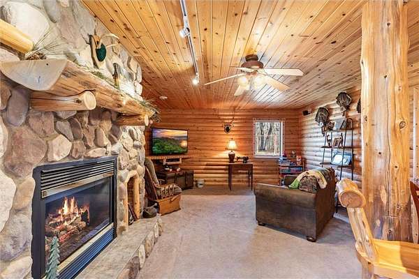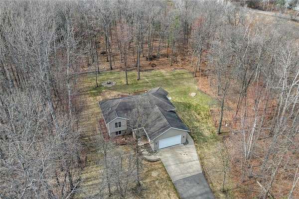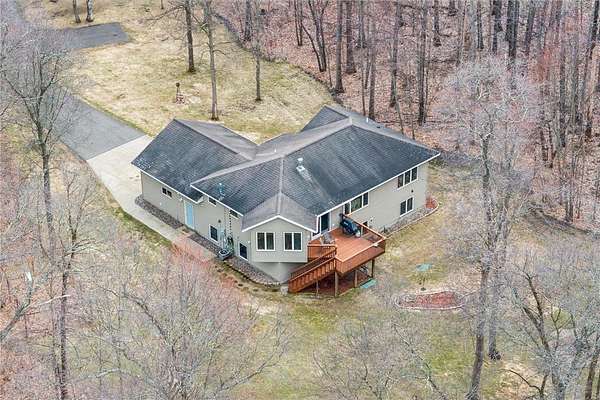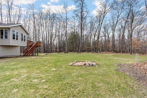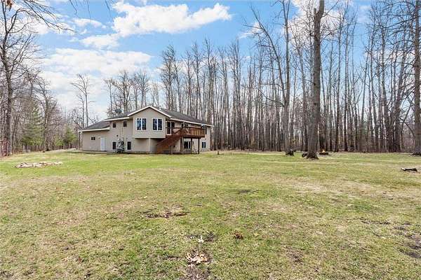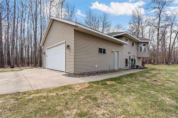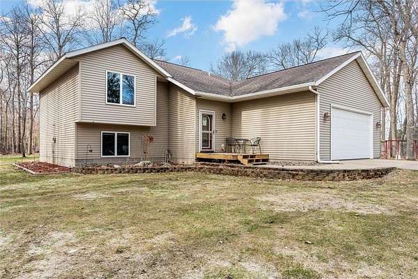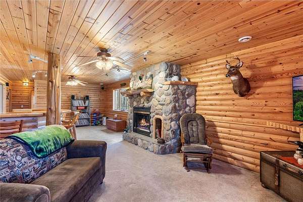 Stunning home on just over 5 acres offering exceptional privacy and peaceful surroundings! As soon as you pull up the driveway you will be in love with this beautiful wooded lot! Step into the spacious foyer and be welcomed with wood vaulted ceilings and a huge stone 2 sided fireplace that looks through to the kitchen! You will love the custom log cabinets with large breakfast bar and real wood floors in the kitchen. Step out onto the deck and enjoy watching all the wildlife in your private back yard complete with fire pit! Main floor laundry is another plus before you walk downstairs to a amazing log wet bar and another gorgeous stone fireplace in the lower family room. Heated two car garage plus extra 10x20 shed & another storage shed for all the toys! This great home also comes with sandy deeded ingress/egress access to Lougee Lake. With 5 bedrooms and 3 baths plus a guesthouse with another bedroom this is the home for you!