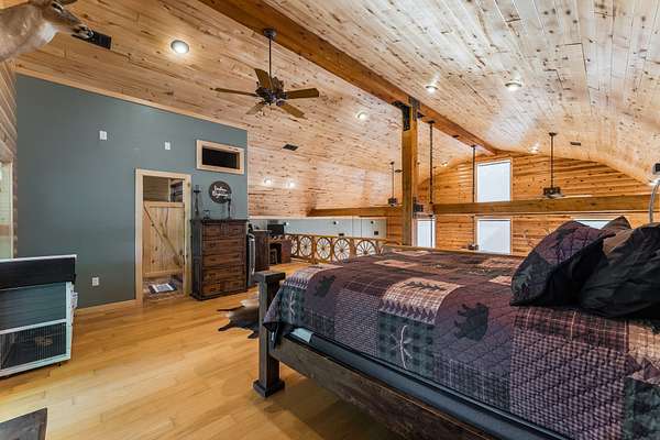 An outdoor lovers dream! Welcome to your secluded cabin at the end of a private road. This beautiful 15 acres is the perfect fit for those that want to enjoy nature and the peace and quiet that comes with it. Cabin features lots of natural light, a very spacious, open concept in living/kitchen area and numerous upgrades. Large laundry/pantry with extra storage. New Samsung appliances, imported beams, maple cabinets, pellet stove, 2 new Trane HVAC units, new water heater, Generac generator for backup power to home and pool house. 1 bed and bath downstairs, 1 bed and bath upstairs with walk out deck. Pool house is 1 bed and 1 bath with large deck aroud above ground pool. Stocked pond next to the house and lots of trails and space to explore outside. The views are simply awesome and the wildlife is plentiful. Whether you are a hunter or just prefer to watch the wildlife, you will not be disappointed. Many deer, turkey and bear call this area home. A park-like setting is the best way to describe it. Just a few minutes from Lake Fort Smith for access to even more trails and fishing. Situated perfectly between Fayetteville and Fort Smith and less than 10 minutes from I-49. Great opportunity!