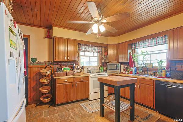 Discover the perfect blend of space, character, and country living in this Cape Cod style home set on 2 peaceful acres just minutes from Marion. With 4 bedrooms, 3 bathrooms, and multiple bonus areas, this property offers room to spread out and features you won't find in a typical home. Step inside to warm wood ceilings, tile flooring, and charming details throughout. The inviting living room features a wood burning stove, ideal for cozy evenings. The main level primary suite provides a relaxing retreat with a jetted tub and the convenience of a private laundry area, while a second laundry room upstairs adds extra ease for busy households. Need flexible space? You will find two additional office or bonus rooms perfect for remote work, hobbies, or extra guests. A bright sunroom off the larger office offers a peaceful spot for plants, reading, or enjoying year round natural light. Practical perks continue outside with an attached garage that includes an underground concrete storm shelter, plus a breezeway leading to a large workshop. The fenced in ground pool is ready for summer fun, and the separate storage or workshop building with electricity and a concrete floor adds even more functionality. With spacious living areas, unique touches, multiple workspaces, and fantastic outdoor amenities, this home combines comfort, versatility, and a serene country setting. It is ready to welcome its next owners, come see what makes it stand out.
