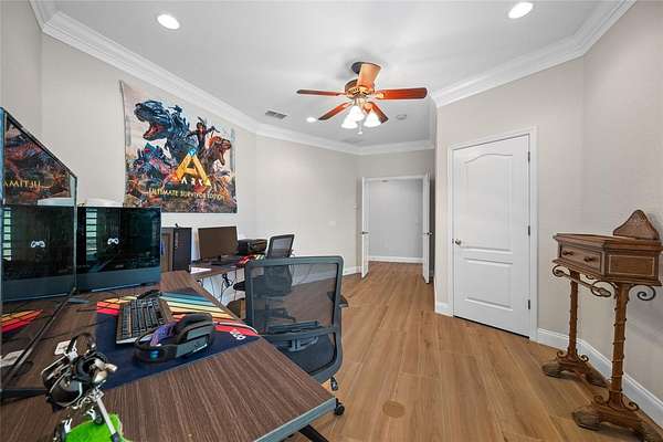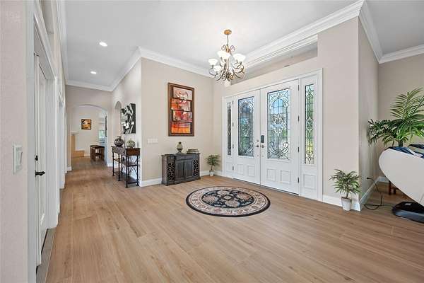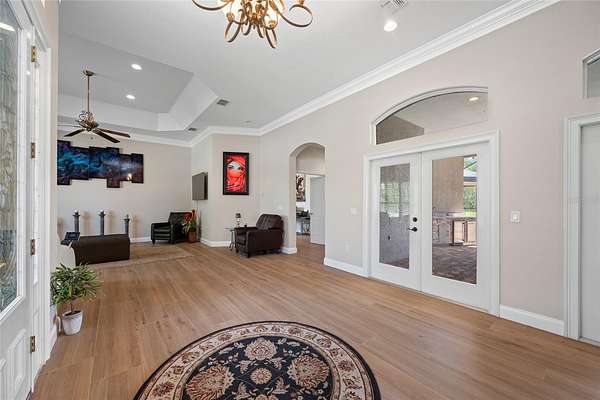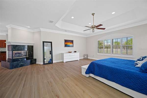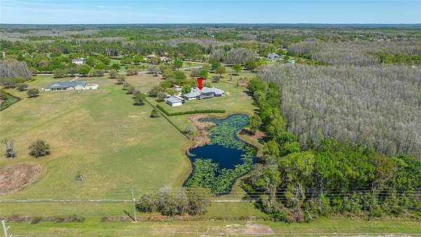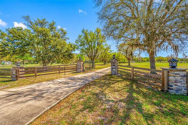 Welcome to the Equestrian Community of Pasco Trails! This estate is fully fenced with a private gated entrance that leads to a circular driveway with a 5,564 s/f pool home sitting on 9.75 acres of property. Enter the home through the leaded glass front doors into the vast foyer with a direct view to the lanai, pool and backyard. To your left is an oversized family room and your own personal master wing that includes a private office/ bedroom, sitting area, 2-sided fireplace, wet bar, en-suite bath and exercise/flex room with access to the pool area. The master bath is incredible with a private water closet, multi-head shower, dual vanities and heated jetted soaking tub. The master also has a large walk-in closet with secure gun room. The three additional bedrooms are on the opposite side of the home and each with its own en-suite bath, one with pool access. There is a double desk space with storage in the hall leading to the 3 additional bedrooms, a great landing spot for doing homework or working on a project. The kitchen will impress even the most discerning chef in the family. The massive island has tons of storage including a wine rack, cooktop with a beautiful stainless-steel hood and convenient warming drawer. Plenty of counter space, two dishwashers, double built-in convection ovens and a separate microwave. The walk-in pantry has room for all the staples and utensils every cook wants and needs. The Living room with gas fireplace is spacious and also has direct access to the lanai. The formal dining room is large enough to host any large holiday gatherings. The excessively large mud room/laundry room with laundry room sink, built in ironing board is ideal for backpacks, shoes and plenty of room for an extra refrigerator! The laundry room leads to a spacious 4 car garage. The 40 X 20 pool with spa and outdoor kitchen are meant for entertaining with a wonderful view of the property. There is a detached garage with drive-through ability to house the lawn equipment, cars and would make a great workshop. This house comes with a 2023 new roof, 2 new water heaters, water softener, two new 5 ton A/C units, 3 electrical panels, central vacuum and so much more. Just minutes to the Suncoast Parkway or I75; both will take you to shopping, dining, Tampa International Airport, entertainment and the beautiful Suncoast beaches.