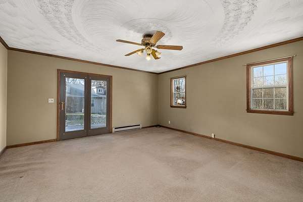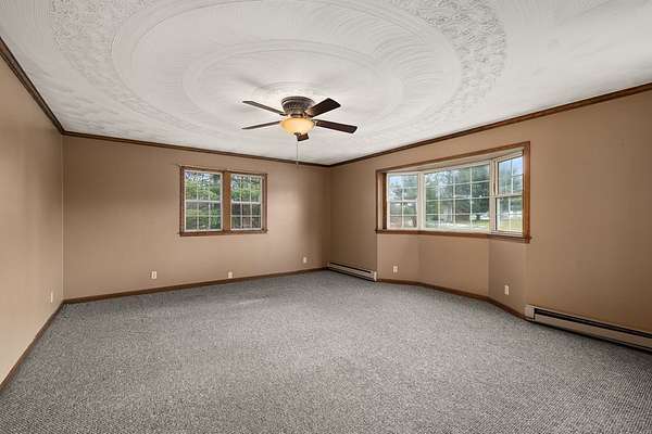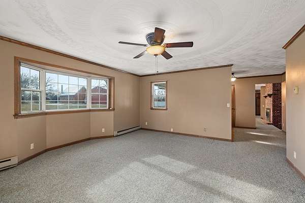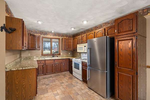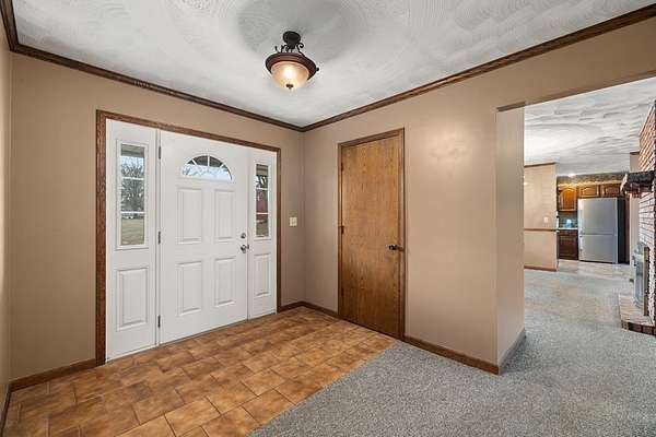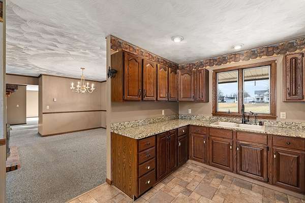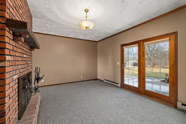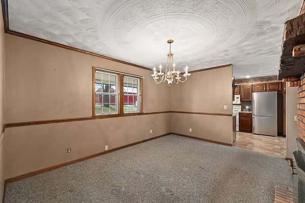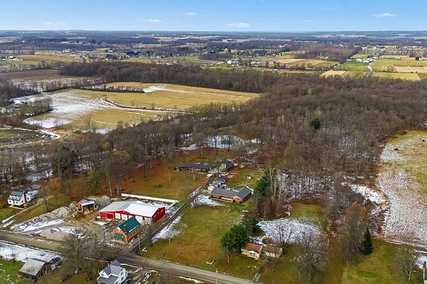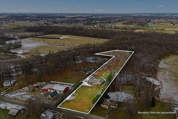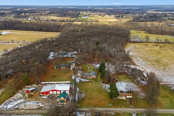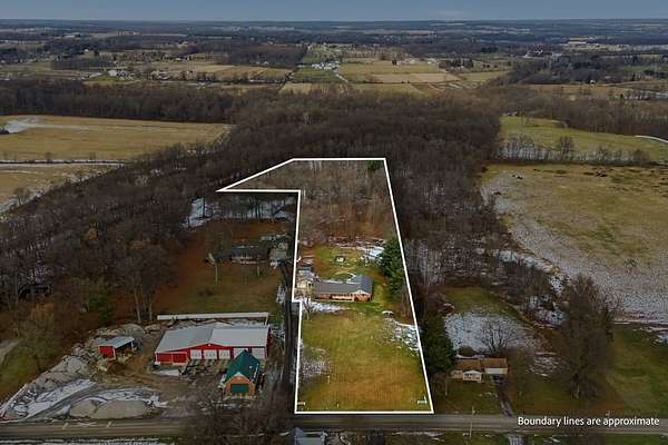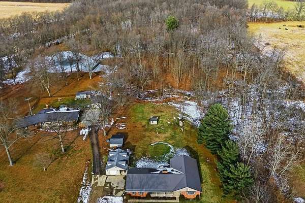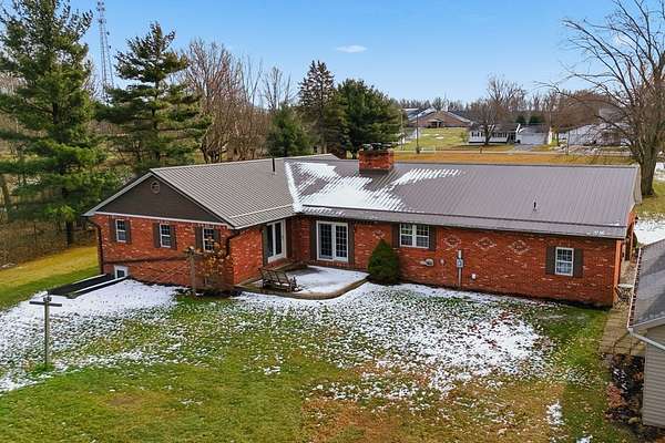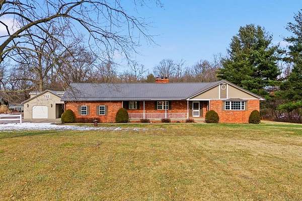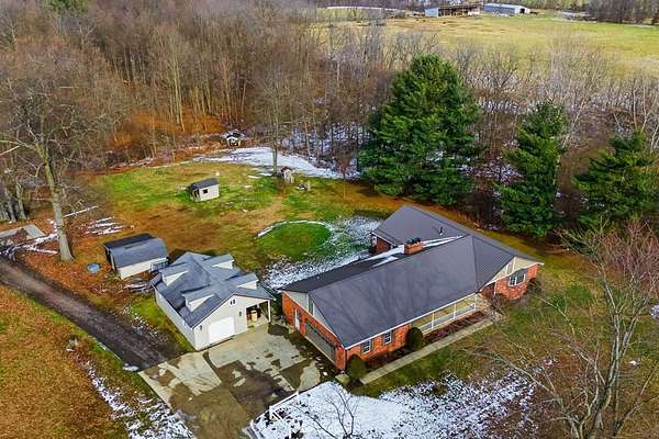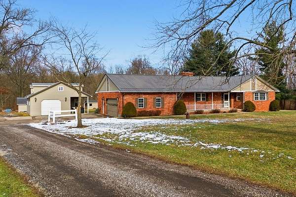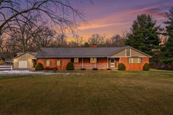 Tucked just outside of town on nearly 5 acres, this brick ranch offers the perfect blend of privacy, space and convenience. Set back off the road and partially wooded, the property provides a peaceful setting with room to spread out. Inside, you'll find a large family room and kitchen featuring granite countertops, ideal for everyday living and entertaining. The finished lower level expands your options with a full basement kitchen perfect for gatherings, multi-generational living or additional entertaining space. A newer metal roof adds peace of mind. Outside the property shines with a spacious 2.5 car garage complete with a mechanic pit, plus an outbuilding featuring a finished sitting room -great for a hobby space, studio or home office. A rare opportunity to enjoy country-style living just minutes from town!
