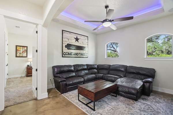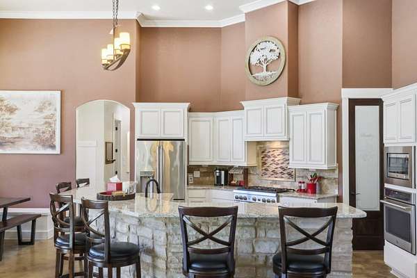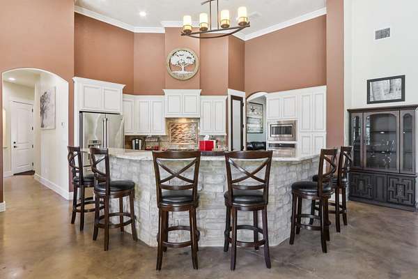 Welcome to 1194 Vaquero Way, a private Hill Country retreat tucked within the desirable Mustang Valley community. Sitting on 5.56 acres, this stunning single-story home offers 4 bedrooms, 4.5 baths, and 3,290 square feet of thoughtfully designed living space - perfectly blending rustic charm with modern luxury. Inside, you'll find soaring beamed ceilings, custom stone accents, and an open floor plan ideal for entertaining. The gourmet kitchen features double ovens, a gas range, stainless appliances, a large island, and breakfast bar, flowing seamlessly into the spacious living area anchored by a stone fireplace. The primary suite provides a serene retreat with spa-like bath, walk-in shower, sauna, double vanity, and walk-in closet. Additional highlights include 2 living areas, a wet bar, and built-in storage throughout. Step outside to your own resort-style oasis complete with a heated in-ground pool, spa, outdoor kitchen with gas grill, and fire pit- all overlooking the peaceful Hill Country landscape. The property is fully fenced with a gated entrance and offers ample parking, including a 4-car garage and RV access. Enjoy the privacy of acreage living while still being just minutes from downtown Wimberley and Dripping Springs. Served by Wimberley ISD, this home also benefits from agricultural and homestead exemptions for lower taxes. Whether you're seeking a primary residence, vacation retreat, or income-producing STR, 1194 Vaquero Way delivers the best of Hill Country living in every detail.