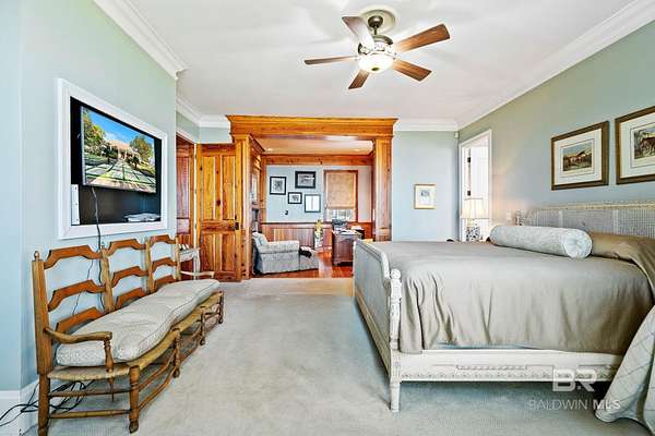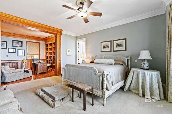 Tucked beneath a canopy of magnificent, centruies-old oaks, this timeless Southern Estate offers 207' of direct waterfront on Bon Secour Bay and the kind of privacy that feels worlds away from everything-yet close to it all. A long, winding driveway sets the tone, gently leading you to this 4000+/- square foot traditional two-story home where classic architecture and coastal living blend seamlessly. With 4 spacious bedrooms, 3 full baths and 2 half baths, there is room for everyone-whether hosting a holiday gathering or a relaxed weekend on the water. Inside, you'll find gracious living spaces designed for comfort and connnection, a gourmet kitchen, sunroom, game room and more, while outside, the lifestyle truly unfolds. A waterside patio lined with rocking chairs invites you to savor morning coffee at sunrise and unwind as the sky melts into evening colors over the bay. The private pier extends into the bay and features a boathouse, 3-4 boat slips, a swimming platform-perfect for boating, fishing paddleboarding, or simply enjoying life on the water. The double garage provides convenience, while the secluded setting offers peace and quiet rarely found in waterfront properties of this caliber. This is more than a home. It is a retreat, a gathering place, and a front-row seat to some of the most beautiful views on the Gulf Coast. It is southern charm, waterfront serenity, and everyday vacation living-all in one extaordinary property. Schedule your private appointement today. Buyer to verify all information during due diligence.