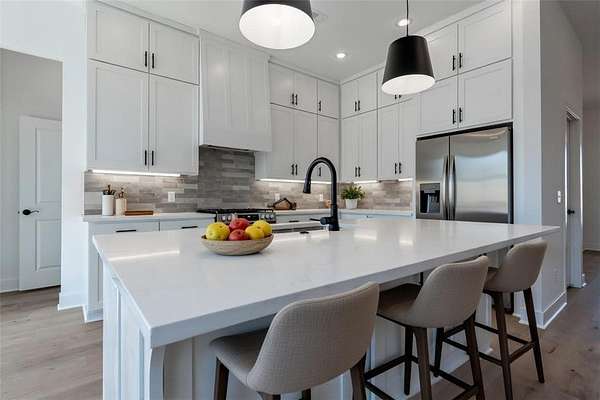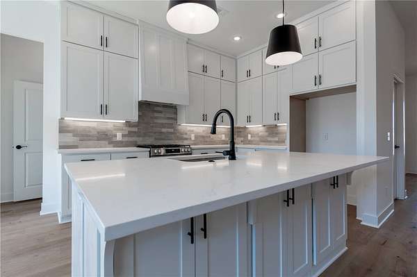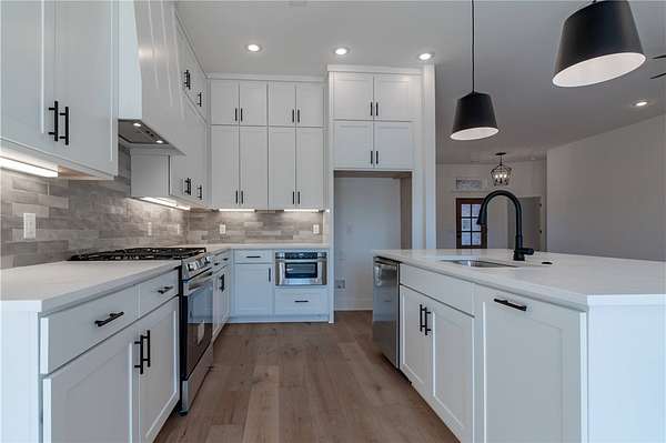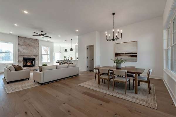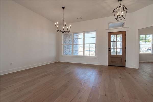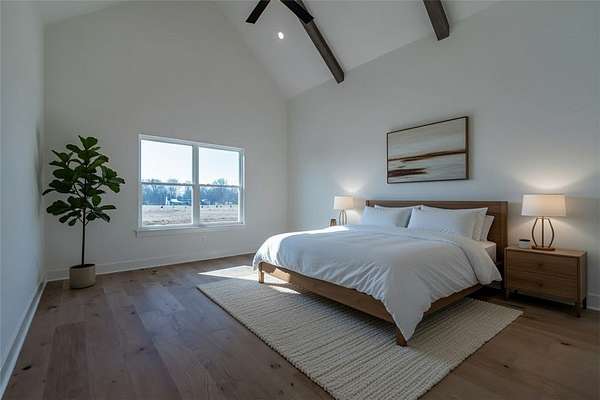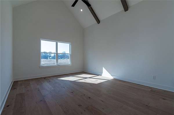 Welcome to your dream home! This stunning, brand-new, all-brick 4-bed, 3-bath home sits on a sprawling 1.62-acre lot, offering space and serenity while still being minutes from shopping, dining, parks, trails, i49, schools, and more! Home features beautiful quartz countertops, custom cabinets to the ceiling, a gas range, and gleaming hardwood floors. The massive kitchen island is perfect for gatherings, while the spacious primary suite wows with its vaulted ceilings, wood beams, a walk-in shower, soaker tub, and huge walk-in closet. Enjoy lazy mornings on the covered front porch or evenings on the covered back patio. A large bonus room upstairs gives you endless possibilities! Don't miss out on this perfect blend of luxury and comfort-schedule a tour today! All bedrooms and 2 full bathrooms are on the main floor. Spacious bonus room with walk in closet and another full bathroom located upstairs. 1 year builders warranty included!