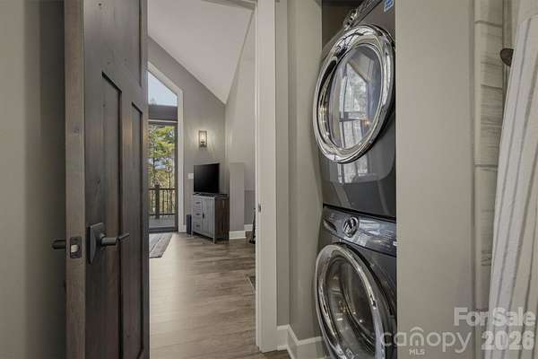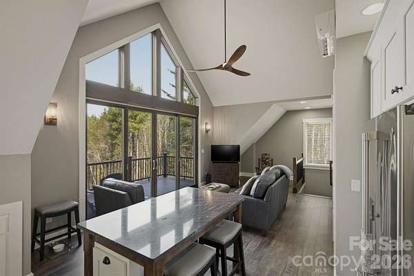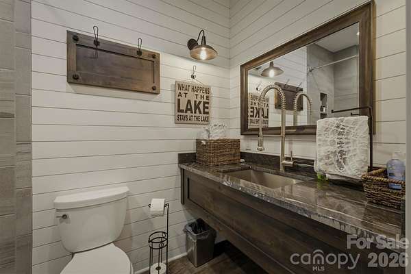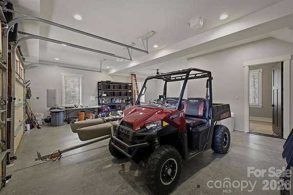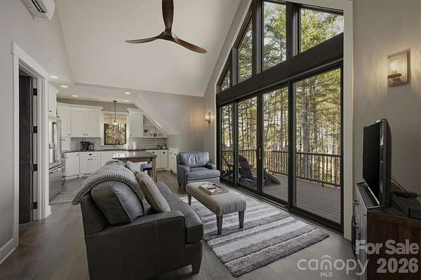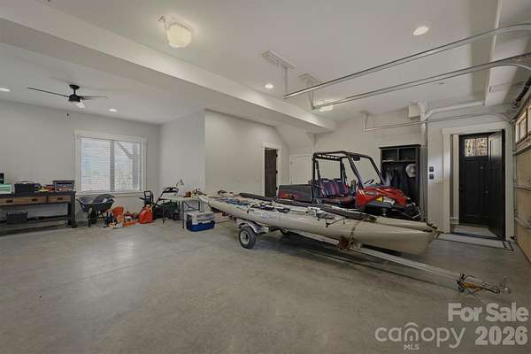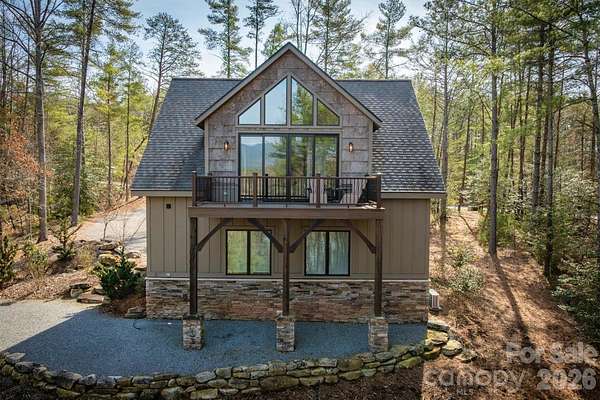 Perched on a stunning 2+ acre homesite within prestigious Old Wildlife Club, 1195 Old Wildlife Club Drive offers one of the most breathtaking vantage points on Lake James. This rare property captures expansive long-range water views paired with the Blue Ridge Mountains, a combination seldom found on Lake James and one that creates a truly unforgettable setting. An easy-to-access, year round boatslip just a short UTV ride away is included! The thoughtfully designed "Garagemahal" provides comfortable living today while leaving plenty of room to build a future dream home on the spacious parcel. The massive two-bay garage is ideal for lake living, with one extra-long bay designed to accommodate a boat, lake toys, or workshop space.Above the garage, the main living area features vaulted ceilings and a dramatic wall of windows that perfectly frame the sweeping lake and mountain views. The open living space flows easily into an ample kitchen with built-in features and granite countertops throughout, making full use of the space for everyday living or entertaining. The primary suite offers a peaceful retreat with a spacious bathroom and stand-alone soaking tub, while additional flexible living space on the garage level includes a full bathroom and room that could serve as a guest area, office, or recreation space. A washer and dryer, generous storage, low-maintenance Hardy siding, and a stone foundation add to the home's practicality and durability. Outdoor living truly shines here. A large Trex deck stretches across the home, showcasing the panoramic views, while a covered patio below and firepit area overlooking the sparkling waters of Lake James provide incredible spaces to relax and entertain. Ownership also includes access to Camp Lake James, offering a lakefront pool, fitness center, tennis and pickleball courts, dining, social events, and marina access. The owners are even willing to share their previous custom home design plans, making this an exceptional opportunity to enjoy the property now while planning your ultimate Lake James retreat.