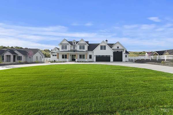 Stunning views of Bogus Basin and Squaw Butte on 10 beautiful acres of flat enough land to be entirely usable but gently rolling enough for big views! Amazing setting for this to-be-built home (photo similar) by Solitude shown with Wolf and Subzero appliances, pick your finishes, select a different plan, or modify for your needs. Pool & hot tub shown is extra $175k The property is well-equipped with a well, septic system, power, and natural gas already in place. A large barn/shop and several mature trees enhance the charm of the land. HOA provides pressurized irrigation for entire lot, ensuring landscaping thrives. Located in a fantastic, quiet, picturesque, equestrian-friendly neighborhood. Parcel cannot be split, offering you privacy and space in a great location within the West Ada School District. You'll be just minutes away from brand new grocery stores, shops, restaurants, and a planned championship golf course. Agent is owner. Message listing agent for building plans and more information.