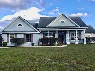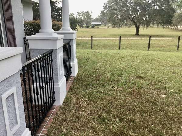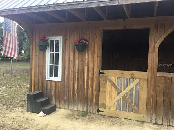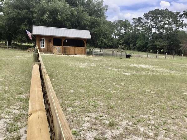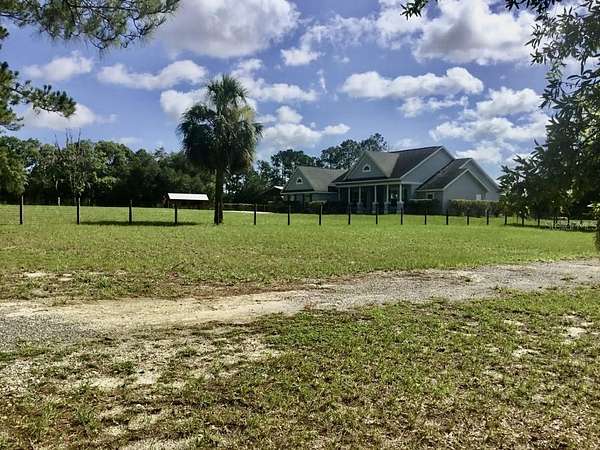 Gorgeous 2007 concrete house on 5.4 beautiful acres. This home and property has been meticulaously mailntained. It is fenced and cross fenced for safety for dogs and horses. Custom built 2023 charming one stall , one tack room barn that opens to a paddock. Ideal for your horses or ponies, There is a 24 'x 36' pole barn that can be used for extra stalls or farm equipment or cars. There is a circular driveway that makes it easy with a truck and trailer to get in an out. The house is set on a hill so the property is Not in a flood zone. Plus the views are amazing with the neighbors field of live oaks across the street. Inside the home, the high vaulted ceilings make it very open and inviting. The kitchen has stainless steel appliances, the refrigerator was purchased new in 2024. Separate laundry room with washer and dryer purchased new in 2024. The master bedroom has a trey ceiling and has a large master bathroom with jacuzzi tup and shower. Toilet in separate room. The two guest rooms are on the other side of the home and large size bathroom in between with the toilet and shower in a separate room from the sink. Very well designed home for a family . The living room has brand new vinyl plank flooring and is open and inviting. The front porch of the home has brick walkways and elegant black railings. The back porch is covered and looks out to the large fenced dog area. The Outside of the home is breathtakingly gorgeous. There is a fenced 3 and half acre field with large old oak trees, a driveway, and a shade screened garden area with water spigots to it. Also water spigots have been installed in the field for watering fruit trees and horses. The well water is delicious and there are also filters in the house to make the water even better. Located 24 miles to WEC and 12 miles to Rainbows Springs. This is truly a dream farm . Come and see this beautiful property.