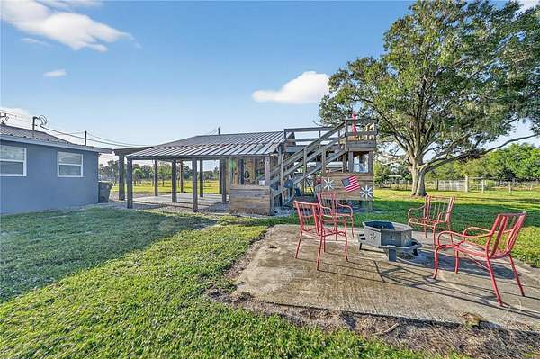 3/2 house with huge Florida room. Updated kitchen & bathrooms. Large living room and dining room. 4.58 acre farm that's fully fenced. Has pole barn, chicken coop and shed. Separate laundry room & storage room. 2 covered car ports with upstairs lounge area. Move in ready and can come semi furnished.