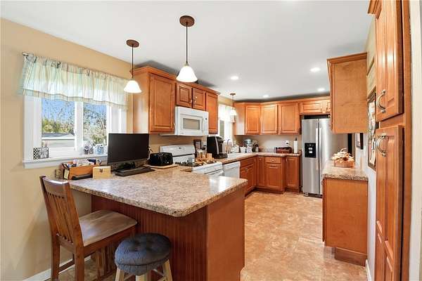 Charming Riverfront Ranch with Guest Cottage on 1.97 Acres! Discover peace, privacy, and modern comfort in this beautifully maintained 2-bedroom, 1-bath ranch-style home perfectly situated on 1.97 acres along the Chemung River. Thoughtfully updated, the home features newer wiring, recessed lighting, replacement windows, and luxury vinyl tile flooring. The kitchen is bright and efficient, complete with a new refrigerator (2024) and new dishwasher (2025). Additional recent upgrades include new roofs & gutters (2024)-ensuring worry-free living for years to come. Enjoy convenient parking and storage with a 1-car attached garage and circular drive, plus a 14' x 30' detached shed ideal for hobbies, tools, or extra space. Step outside to your concrete patio, perfect for morning coffee or relaxing evenings. The property also includes a versatile accessory dwelling unit (ADU) featuring 1 bedroom, 1 bath, and a spacious open-concept living area and kitchen-perfect for guests, extended family, or potential rental income. The ADU also offers its own patio, creating two tranquil outdoor spaces to enjoy the natural surroundings. Set back from the road and surrounded by nature, this property offers a rare combination of privacy, river views, and modern convenience. Whether you're looking for a peaceful primary residence, a weekend retreat, or an income-producing opportunity, this riverside gem has it all.