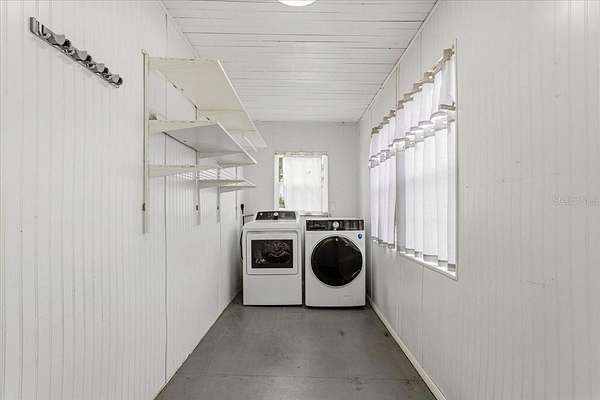 Enjoy the covered front porch, the perfect space for morning coffee or relaxing evenings while taking in the peaceful surroundings. The enclosed, air-conditioned back porch also serves as a functional laundry area and offers additional flex space.