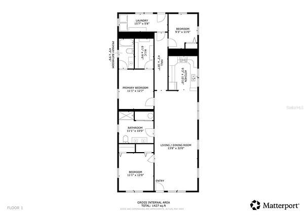 - Bathroom x 2, Bedroom x 3, Dining Room, Kitchen, Laundry, Living Room