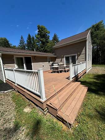 Est $2,606/moThis beautiful camp/cabin/home is located in Dark Skys territory! It is on a double lot-6.6acres. 3 bedrm 1 & 1/2 bath. Lots of upgrades, well maintained and manicured grounds. An awesome front covered porch and a beautiful open rear deck with railing and both are Composit flooring! There is a detatched 2++ car garage for all your toys/mowers and automobiles. A great outdoor mix of lawn and woodland. Make an appointment today to see this little piece of heaven!