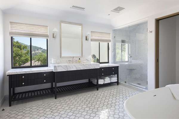 Est $164,715/moNestled in the hills of Montecito, this newly renovated estate offers unmatched panoramic ocean, island, and mountain views. The grand main residence features soaring ceilings, wide-plank wood floors, arched French doors, a showstopping kitchen, a formal dining room, and a luxe primary suite with dual bathrooms and closets. Three additional bedroom suites, two guest houses, and stunning outdoor spaces-complete with an outdoor kitchen, pool, spa, gardens, and multiple terraces-create an unmatched living experience in a private gated setting.