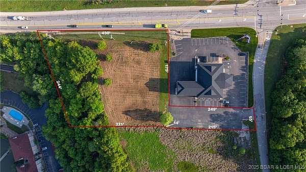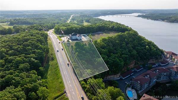 Nestled in a prime location along the coveted Horseshoe Bend Pkwy, this exceptional 2.40-acre parcel presents a rare opportunity for commercial development in one of the most established areas at Lake of the Ozarks. Zoned B-2 Commercial, it features an impressive 438 feet of highway frontage, offering outstanding visibility and striking views of the Main Channel. Direct access at a traffic light provides unmatched convenience-superior to any other property along HH. Positioned in the heart of the thriving Horseshoe Bend community, the site is surrounded by upscale homes, established businesses and luxury condominiums. Its strategic location is further boosted by proximity to the rapidly expanding Lake Ozark area, as well as future attractions including a planned amusement park, casino and multiple resort projects. Located at the 14-mile marker of the Main Channel, the property delivers sweeping panoramic lake views-an exceptional asset for a wide range of commercial uses. With mostly moderate to flat terrain and quick access to the highway, development is streamlined. This is a rare combination of visibility, accessibility and natural beauty-ideal for your next business vision.