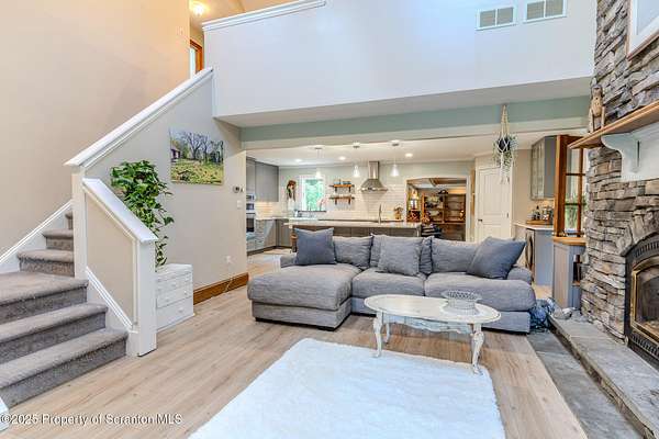 Welcome to this rare and exceptional opportunity--an immaculately renovated home paired with a versatile commercial building, all set on more than 13 beautifully landscaped acres. Perfect for those seeking the ideal blend of modern living and business potential, this unique property offers space, functionality, and endless possibilities.Residential Highlights:Step into the completely updated home boasting over 3,200 square feet of thoughtfully designed living space. The open-concept main floor features a gorgeous, oversized kitchen with a large island, pantry, and stainless steel appliances--perfect for entertaining or everyday family life. The spacious family room is warmed by a cozy fireplace, while a charming living room with a cathedral ceiling and second fireplace offers a peaceful retreat.With 3 bedrooms, including one on the first floor, and a huge loft currently used as a 4th bedroom, there's room for everyone. The master bedroom includes its own private balcony, ideal for enjoying your morning coffee or stargazing at night. Two full bathrooms, a convenient first-floor laundry, central air, a brand-new forced hot air furnace, and an endless hot water heater ensure year-round comfort and efficiency.Step outside to enjoy the deck and patio, surrounded by mature landscaping, a dedicated garden area, and serene natural views. Enjoy the one car garage with loft storage.Commercial Building:In addition to the residence, this property includes a separate commercial building, perfect for a variety of uses--retail, office, studio, or even rental income. Whether you're looking to run a business from home, create a private retreat, or invest in flexible property, this one-of-a-kind package delivers.