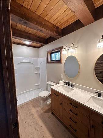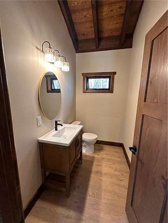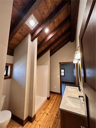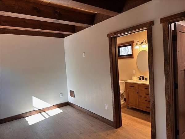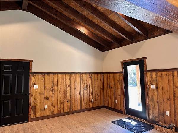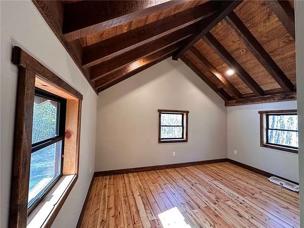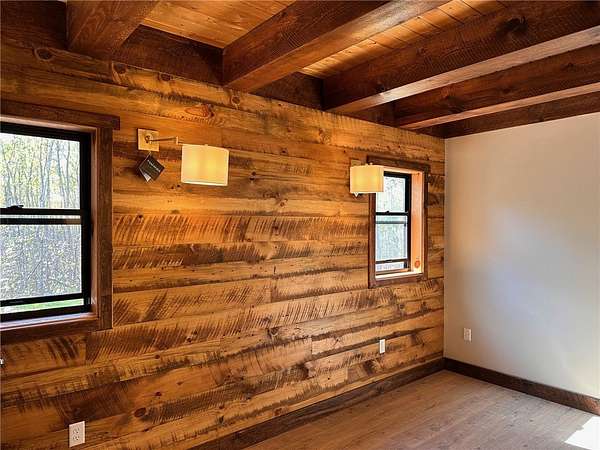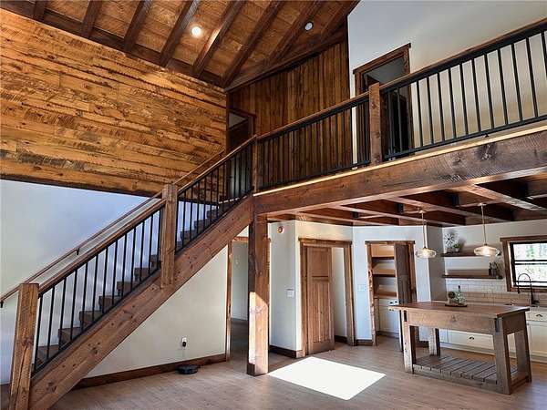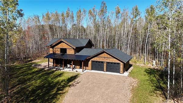 Situated on 6.02 acres just five miles north of Hayward off Highway 63, this brand-new custom-built home sits on private land nestled between the renowned Birkie Trail and scenic Nelson Lake. Surrounded by opportunities for year-round outdoor sports, snowmobiling, and ATV riding, this property is a dream for outdoor enthusiasts. The 1.5 story home features hand-crafted rough sawn timbers, abundant natural light, and an open floor plan throughout. Designed for easy, low-maintenance living, the main floor offers everything you need including a full-time residence master suite with a walk-in closet. With 3 bedrooms, 2 full baths, 2 partial baths, wood and LVT flooring, and a heated two-car garage, this home adds convenience and comfort. Whether you're looking for a primary residence, vacation getaway, or Northwoods retreat, this thoughtfully designed home offers exceptional craftsmanship, privacy, and access to everything the Hayward area has to offer.