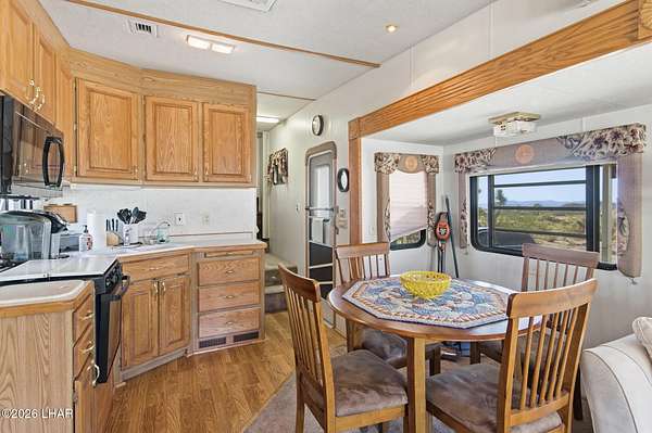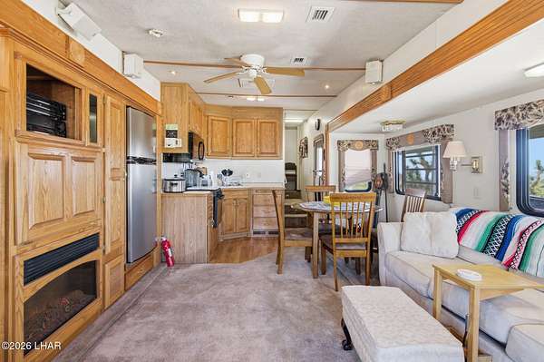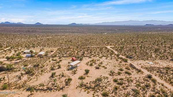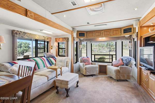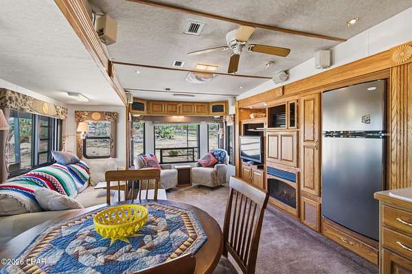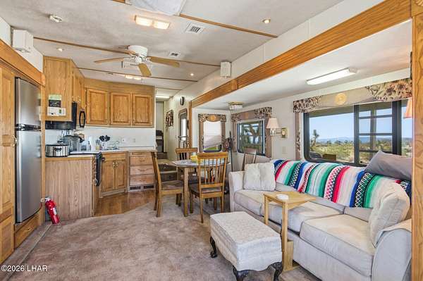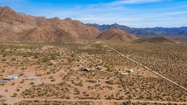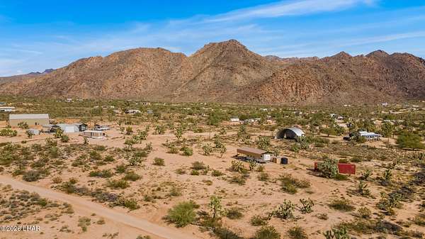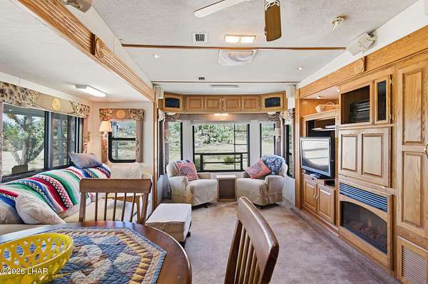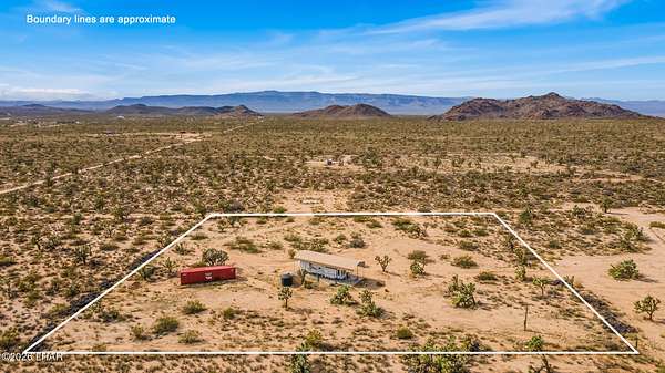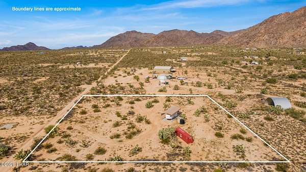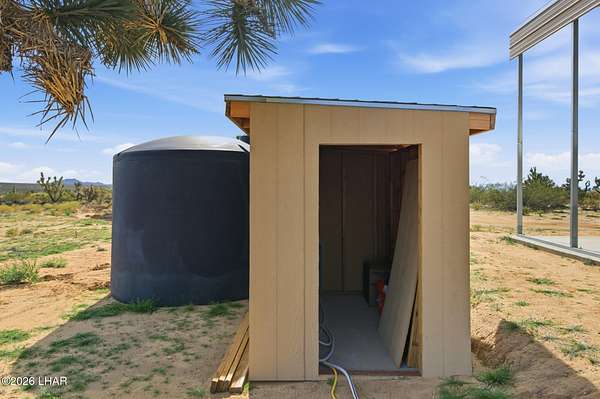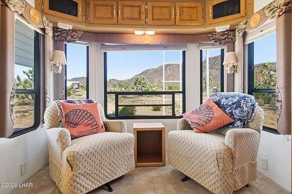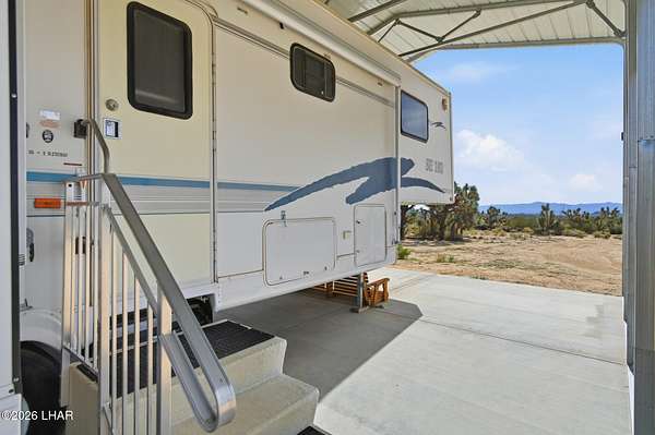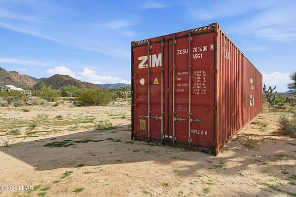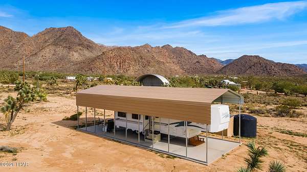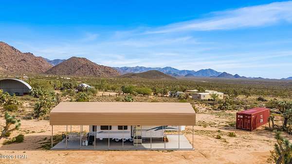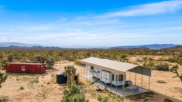 Space, privacy, and a fully dialed-in desert retreat, this property has it all. Set on 2.35 acres with easy access and wide-open desert views, this is far more than a vacant lot. A 1999 Snowbird SE-102 fifth-wheel trailer is included, positioned on a 50 x 20 concrete pad and covered by a metal awning for year-round protection. With three slide-outs, the interior feels impressively spacious and features a fireplace, full-size refrigerator, new microwave, three TVs, and move-in-ready furnishings including furniture, dishes, and linens, with room to add a washer and dryer. Outdoor living is already set up with a Blackstone grill. The infrastructure is complete with electricity installed, a brand-new 1,000-gallon septic system, a nearly full 2,500-gallon water tank with pump house, and a 8 x 40 in-ground shipping container for secure storage, with everything inside included. Whether you're looking for a weekend escape, seasonal retreat, or a ready-to-use property with room to build your dream home, this one is ready now!
