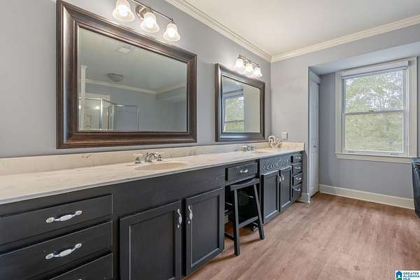 Discover this stunning 5-bedroom, 3.5-bath home on 3 beautiful acres in Lakeview's Hidden Valley community. Featuring two primary suites--one on the main level with a roll-in shower and another upstairs with a sitting area and walk-in closets--this home offers comfort and flexibility for any lifestyle. The spacious kitchen includes granite counters, a walnut island, beverage bar, and abundant storage, perfect for entertaining. Enjoy multiple living areas, including a grand living room, music room, and upstairs den. Step out onto the screened A-frame porch and take in the peaceful wooded views. With hardwood floors, fresh paint, and thoughtful details throughout, this home perfectly combines modern luxury with country tranquility. Located in the sought-after Brookwood school zone and just minutes from I-59, this property offers the perfect blend of space, comfort, and convenience--your private retreat awaits!