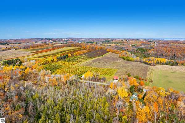 76 ACRE OMENA PARCEL, BAY VIEWS, ACTIVE ORCHARD, ASSURED PRIVACY. This is a chance you won't get again. Acquire a premium agricultural parcel in the rolling high country above Omena, featuring beautiful Grand Traverse Bay views from multiple locations. This 76-acre parcel maintains Leelanau's farming culture and offers the potential continuation of the agricultural tax exemption. The farm includes about 25 acres of producing orchard: 17 acres of Montmorency tart cherries and 7.7 acres of Empire/Supermac apples. 15 acres are ripe for expansion. A local grower professionally maintains the orchard, ensuring agricultural continuity for inexperienced owners. Value and privacy are assured: The property adjoins the Leelanau Conservancy's 84-acre protected parcel to the east, ensuring your neighboring landscape remains permanently unspoiled and development-free. A diverse landscape awaits, including acres of open fields, mature woods sloping to a creek, and an existing 6-inch well. The ideal setting for a private agricultural estate.