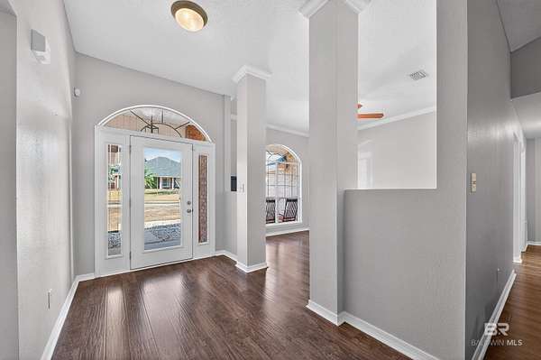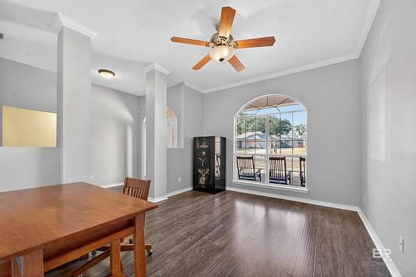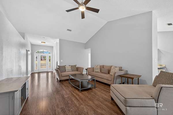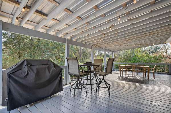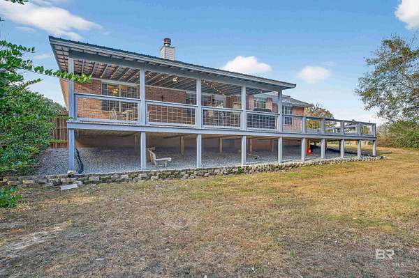 Nestled on a private 1.8-acre parcel, this property offers rare tranquility with an additional large non-buildable lot next door for extra privacy. The open-concept layout features soaring vaulted ceilings that create an airy, spacious feel throughout the main living areas. Generously sized bedrooms provide comfort and flexibility, along with an extra room ideal for dining, a home office, or even conversion into a fifth bedroom. The Garage is oversized at 20x26. Outdoor living truly shines here. A stunning 16' x 60' balcony--complete with a 16' x 24' covered section--invites you to relax and enjoy the beauty of the outdoors in rain or sunshine. Evenings are unforgettable around the fabulous fire pit beneath the Alabama stars .At the back of the property, you'll find direct access to the onsite Magnolia River, a peaceful natural feature home has not been exposed to flooding. Under the deck provides extra ample covered area. Despite the privacy and seclusion, the location remains exceptionally convenient to beaches, shopping, restaurants, hospitals, and airports. Photos offer a glimpse, but nothing compares to experiencing this remarkable property in person. Buyers to verify all information Buyer to verify all information during due diligence.