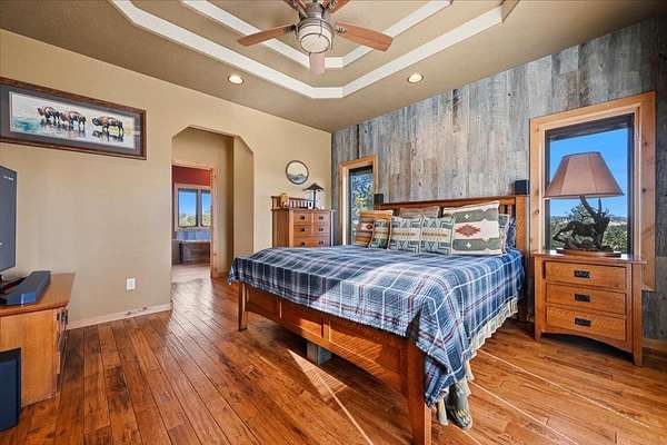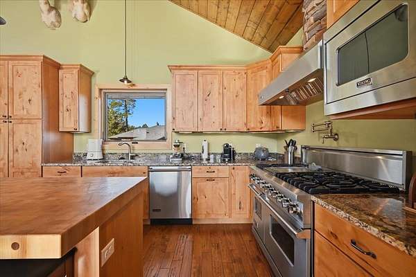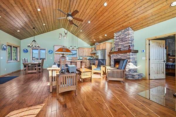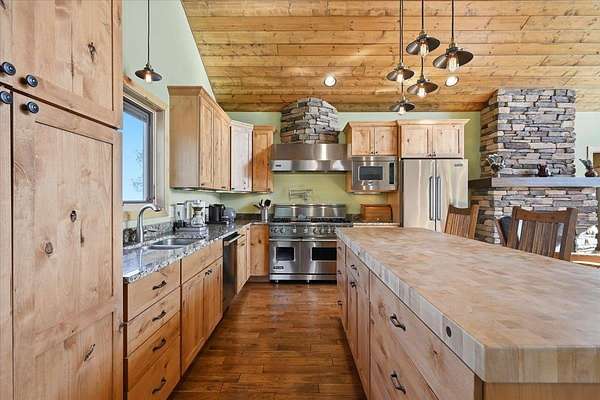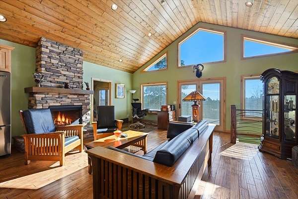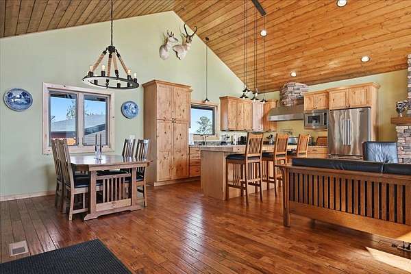 Colisted by Austin Stiles and Lonnie Doney, KWBH. Never before offered for sale, this custom-built, rustic luxury home sits on 2.57 acres with incredible views and offers convenient main level living, a fully finished walkout basement, and an intentional floorplan designed for comfortable living. Inside, the great room is the heart of this home- anchored by a gas fireplace with stacked stone surround, soaring 20' vaulted ceilings and a wall of east facing windows that bring in great natural light and allow the views to become a striking focal point. The chef’s kitchen is designed to impress with Viking professional appliances, granite countertops, ample cabinetry with soft-close drawers, and a large island for convenient seating. The main-floor primary suite offers a private retreat with deck access, 2 walk-in closets, and a spa-like ensuite bathroom with dual sinks, a corner jetted tub and custom walk-in shower. Convenient main floor laundry and a half bathroom complete this level. Downstairs, the walkout basement has 9’ ceilings, two bedrooms with sliding door access to the patio, a large family room, and a mechanical/storage area. Outdoor living shines with a raised deck spanning the back of the home and a wrap around ground-level concrete patio - both spaces perfect for enjoying the amazing views, mature trees and rock landscaping. Rustic design, luxury living, and breathtaking views—this property delivers it all- call today. **Roof is 50 year, 16gage Weathering steel