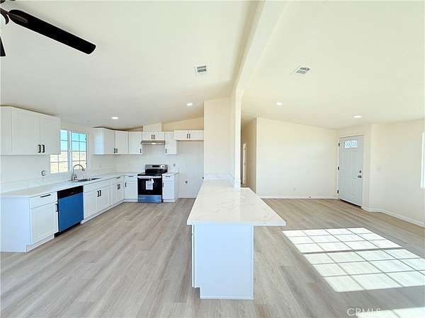 The interior showcases new windows that bring in natural light throughout, enhancing the fresh, updated feel. The spacious kitchen stands out with white quartz countertops, offering both style and functionality, along with ample room for cooking and gathering. This property combines upgraded living with generous outdoor space, ideal for a variety of uses.
