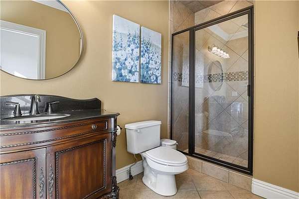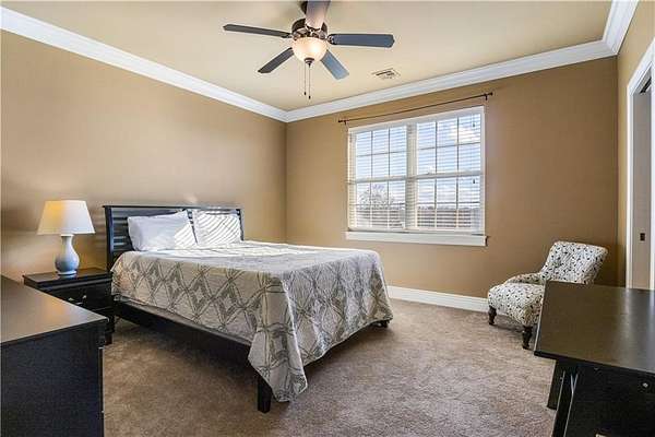 Elegant home in the prestigious gated community of Churchill Downs featuring 2 acre lot & over 5500 sq ft of living space. Main level includes a dedicated office, formal dining room, formal living room with gas fireplace, den with wood burning fireplace, & privately tucked away full guest bathroom. The gourmet kitchen is equipped with 5 burner gas range, double ovens, trash compactor, coffee bar, pantry, & is centrally situated offering the host & their guests the perfect gathering space. The 2nd level includes 2 additional ensuite bedrooms, 4th bedroom, guest bath, an oversized bonus room or possible 5th bedroom complete with laundry chute/mini fridge/sink. A 2nd upstairs bonus room offers an ideal space for home fitness. Outside you'll enjoy a large back patio, fenced in yard with private expansive views, lighted pool with fountains, cabana, & room for lounging. New Roof in 2024. New hot water heater in 2023 with hot water recirculating system.